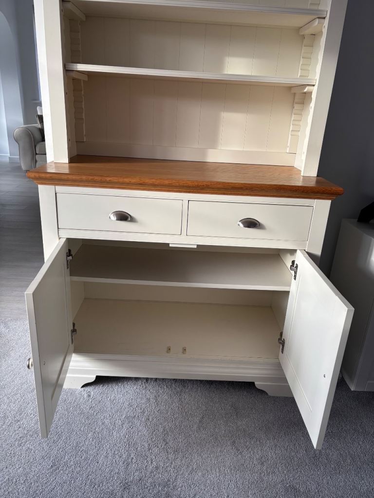 Sideboard with drawers, and a dresser that sits on top (which is not attached and does not have to be bought if not wanted).