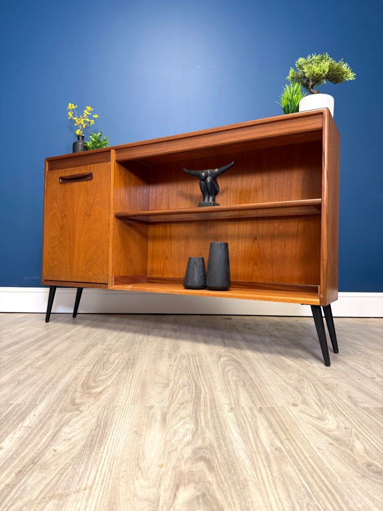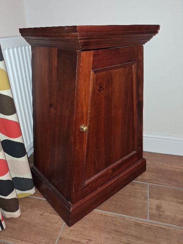 Lovely teak wood cabinet. See photograph for size. A small scrape on the bottom plinth see image five. From a smoke and pet free home. Good condition