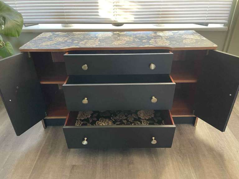 For Sale: Upcycled Mid-Century Sideboard in matt black Frenchic Paint, with a classic