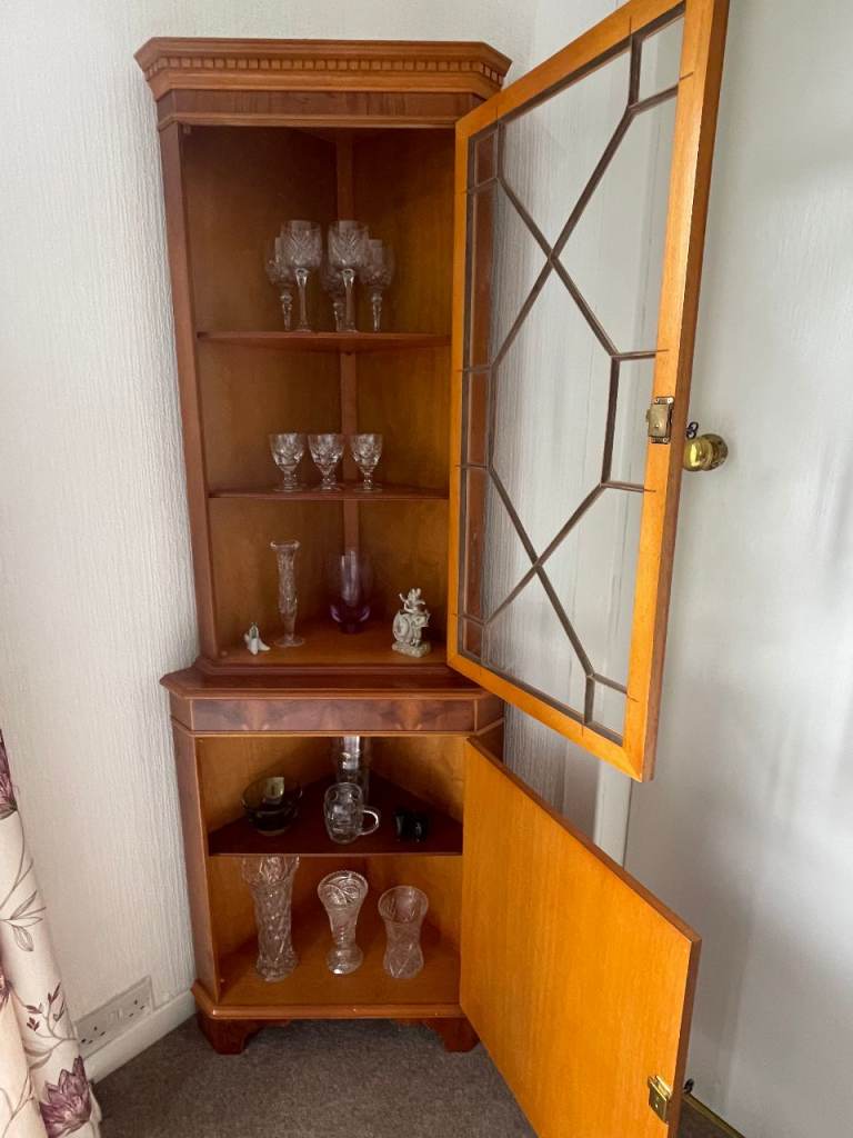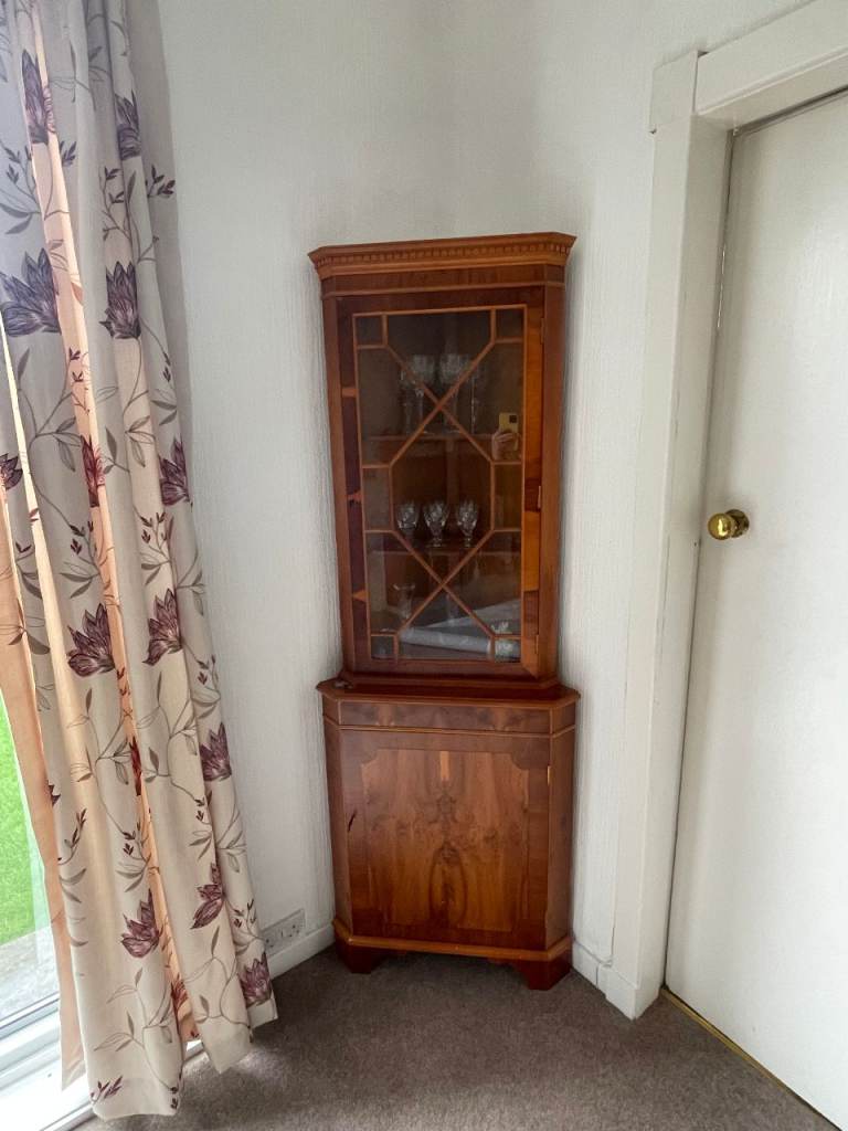 Yew furniture - sideboard, corner display cupboard and TV unit, available separately or discounted to £150 for all 3. Dining table and chairs in yew also available.