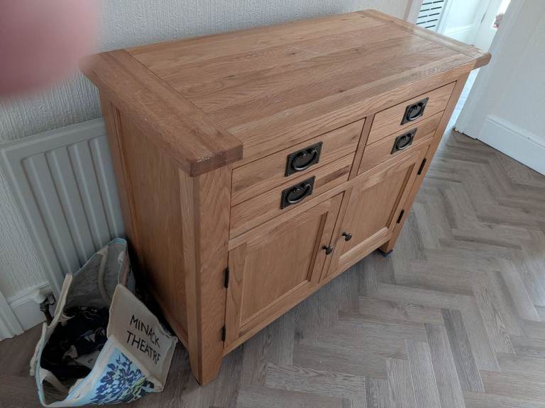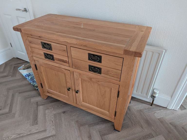 Sold oak sideboard by Cotswold company 2 drawers and 2 cupboards in good condition. £500 new