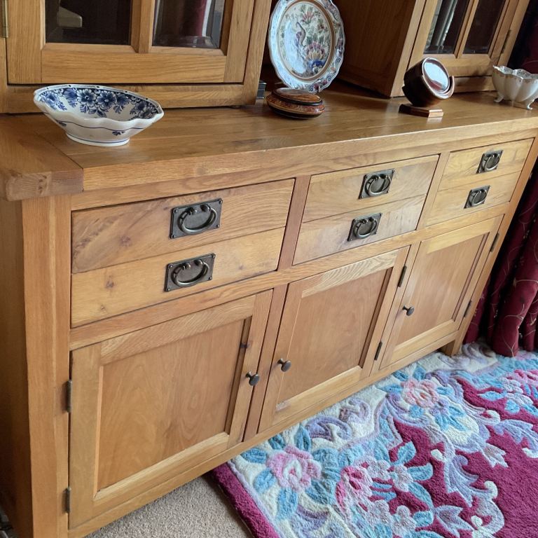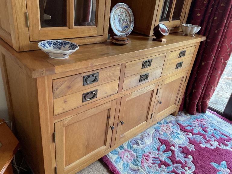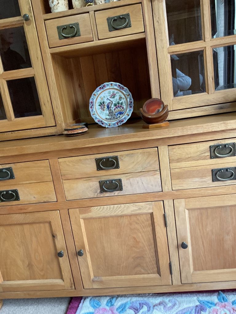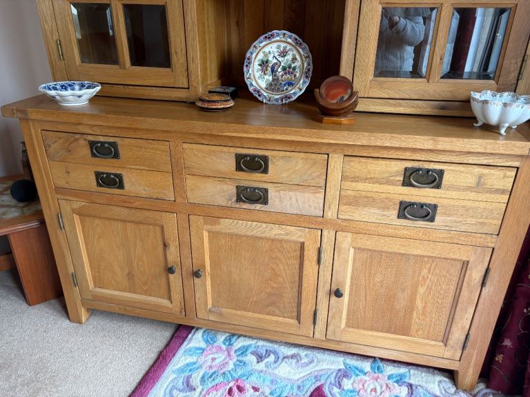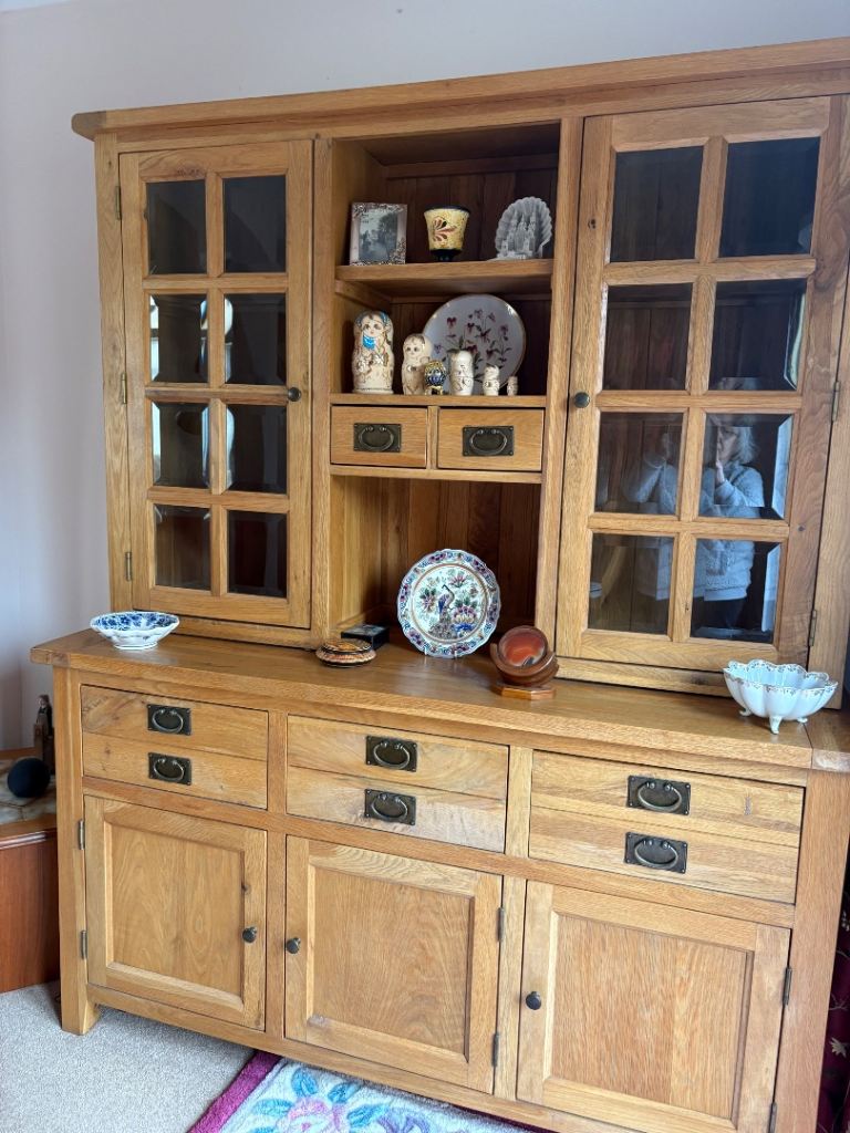 Welsh Dresser in solid oak. Total height 6 ft 6 inches high, Width 5 ft 3 inches & depth 2 ft.