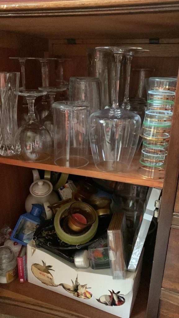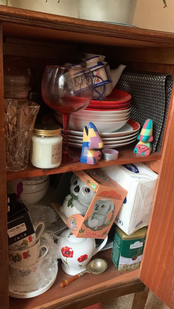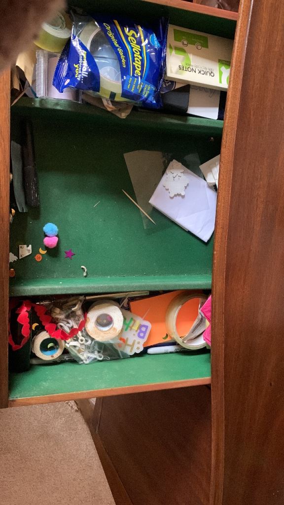 Wooden sideboard with 2 cupboards and 4 drawers the top drawer lined with green felt used but still very serviceable has a mark on the top as shown in the photo cash buyer only and collection only contents not included