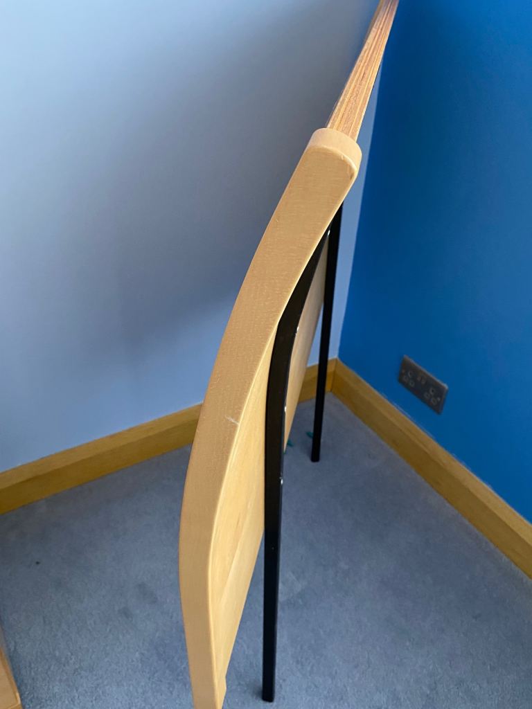 The divans made by John E Coyle Ltd, each come with clean, un-stained mattresses. The first spring mattress is made by the London Bed Company and in very good condition. The second mattress is manufactured by the Silent Night Company and also, is in very good condition. Both items provide for a soft repose. Each divan has a maple headboard. The headboards, each have 2 metal square tube legs which are affixed by two bolts, to the head or fascia of each base.
