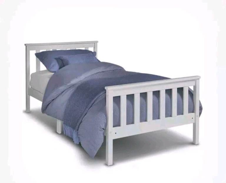 2 x white wooden bed frames. Hardly used at all as they're just in the spare bedroom.