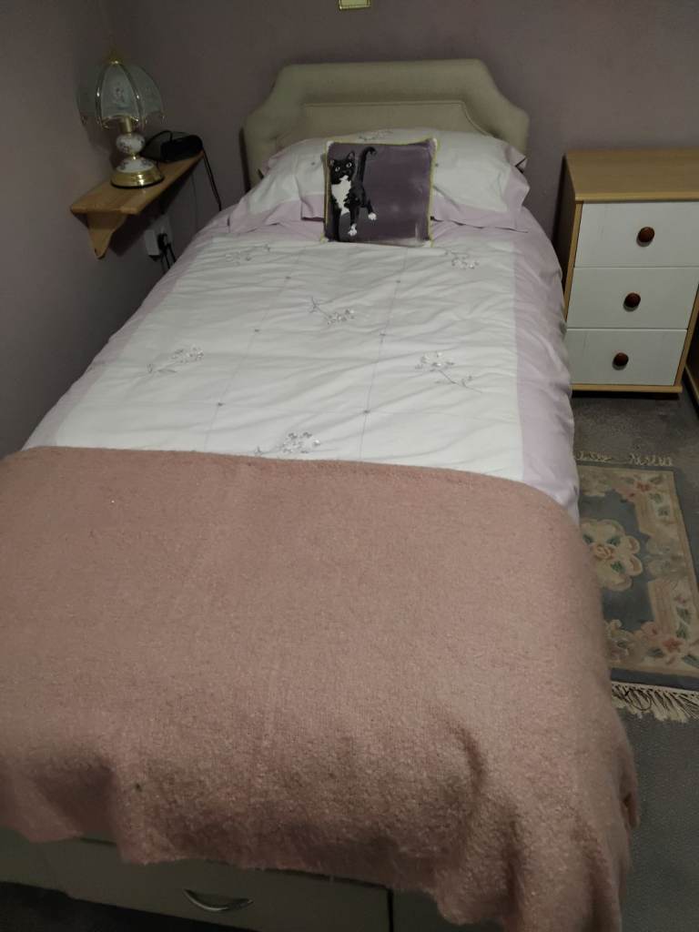 Adjustable electric bed and headboard. Wiltshire memory foam matress with fully zipped removable, washable cover.