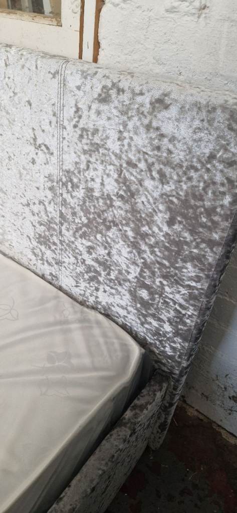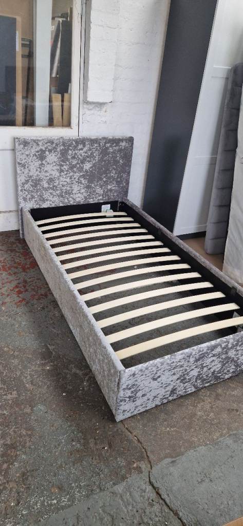 Argos home Lavendon 3ft single fabric frame bed - Silver crushed velvet fabric & brand new mattress