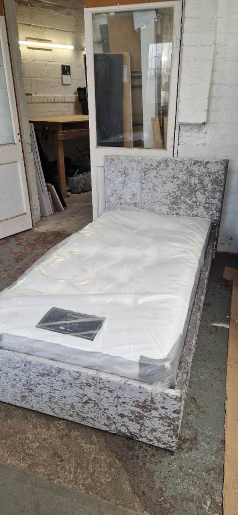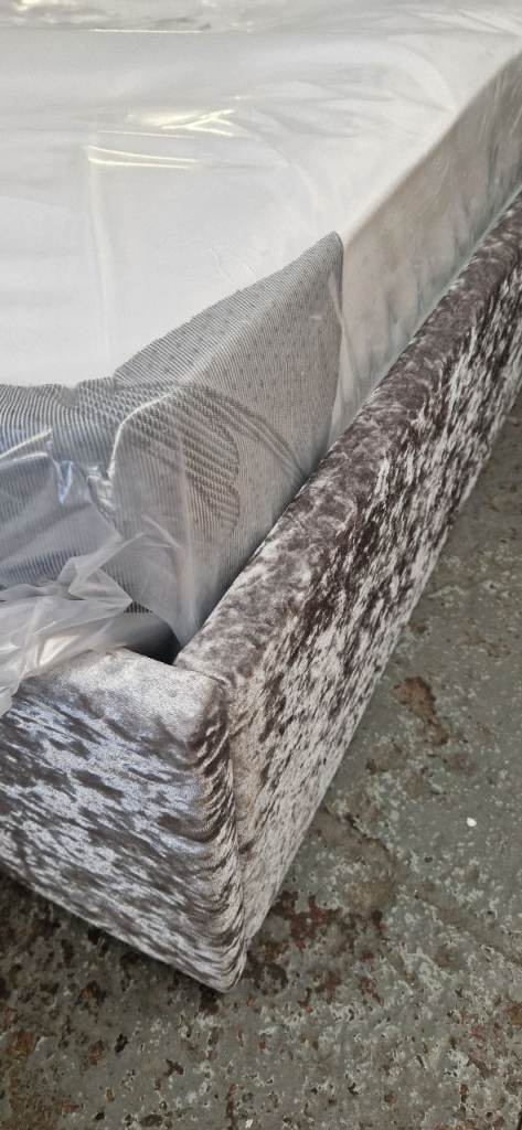 !!! Ex Display Model !!! Argos home Lavendon 3ft single fabric frame bed - Silver crushed velvet fabric & brand new 8 inch deep spring firm mattress