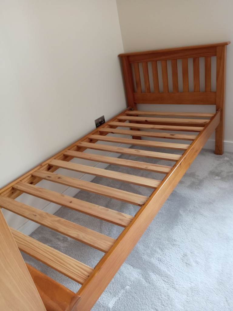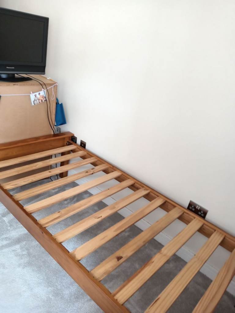 Bed frame from John Lewis - made from hard-wearing pine wood, with solid slats in the base providing a firm foundation for your matress. Ht 99.5 x W98.5 x D203.8cm. Mattress not included. Can be dismantled for easy transportation