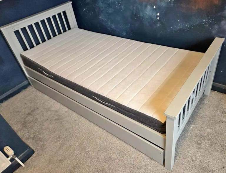 I sell the bed together with the mattress and bedding. I have 2 sets of bedding. Everything is ready for sale and ready for use from NOW