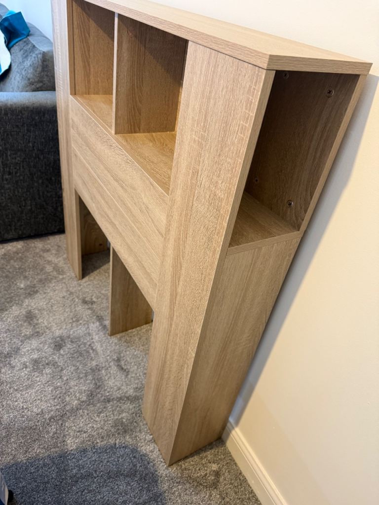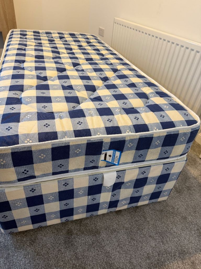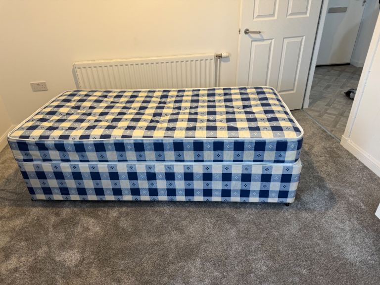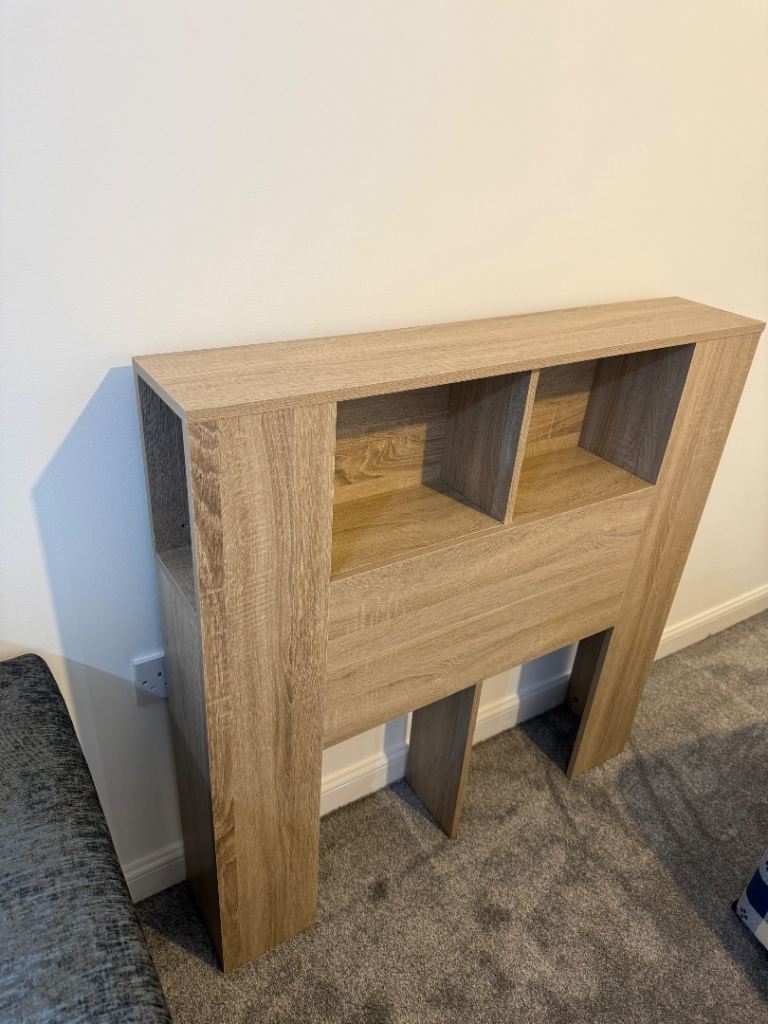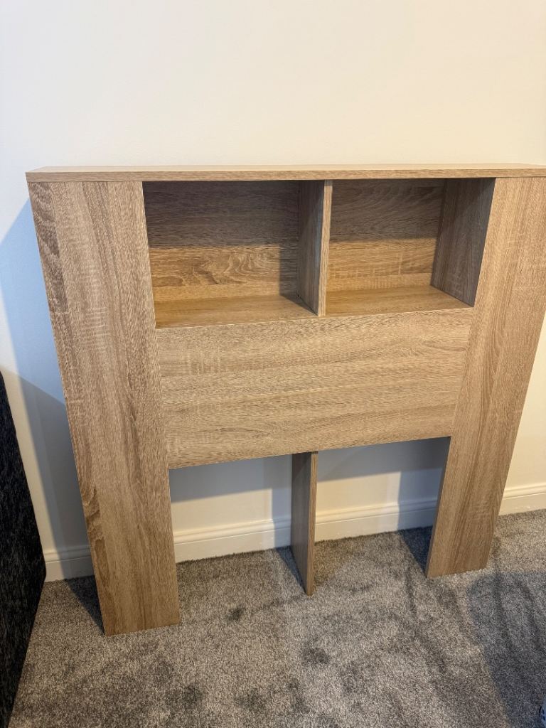 Single bed with mattress and headboard shelf unit. Like new. Slept only 2-3 times by single person.