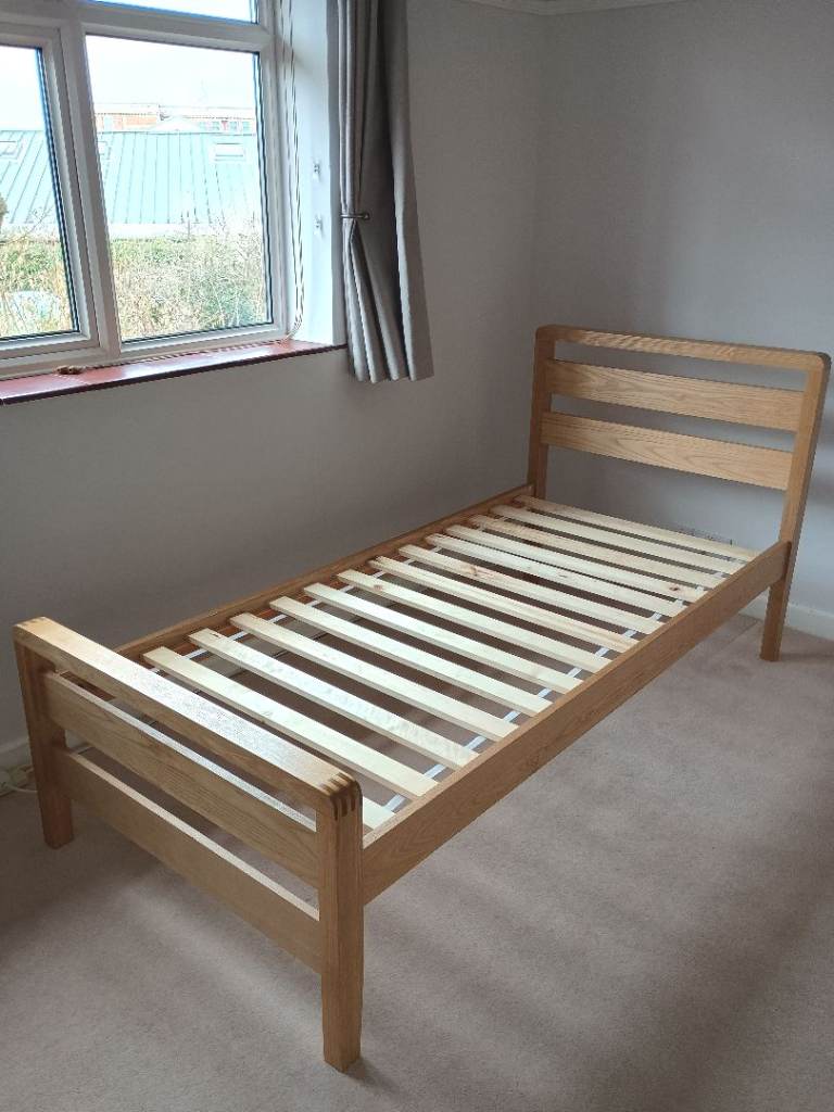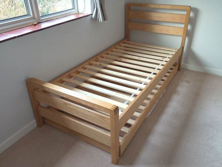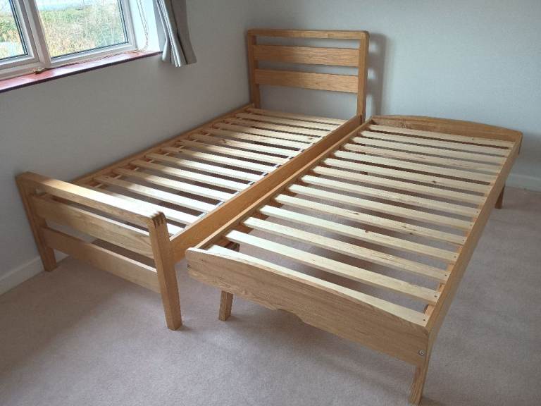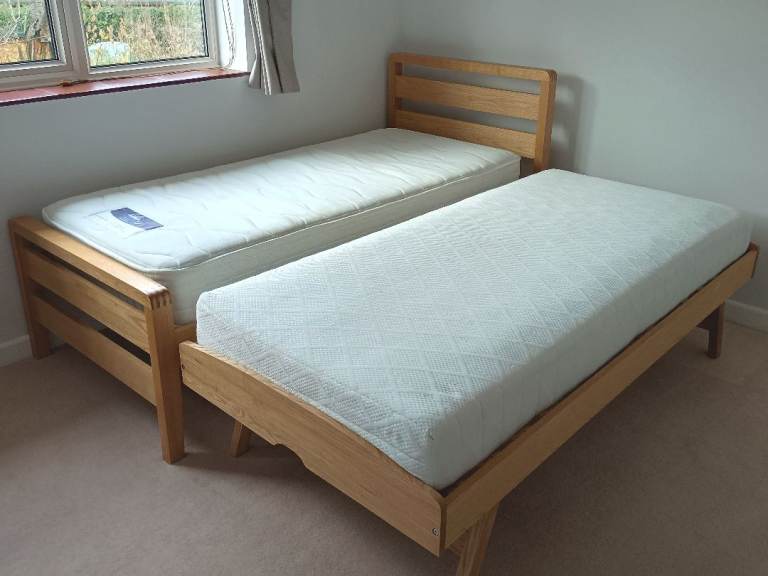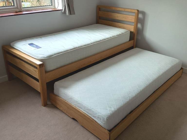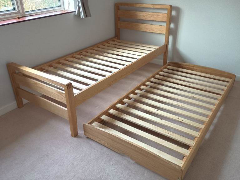 For sale - our Bensons for Beds Solid Ash & Ash Veneer Bed Frame with lower guest Trundle Bed (on wheels) that stores underneath.