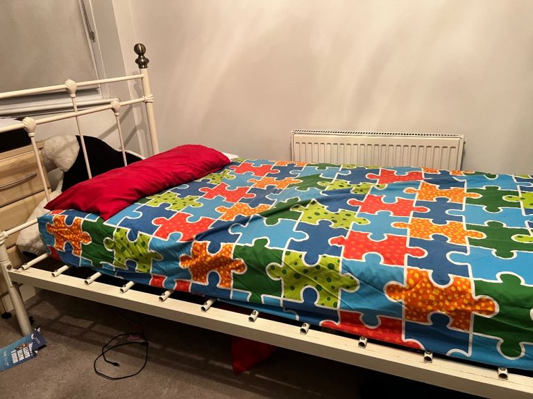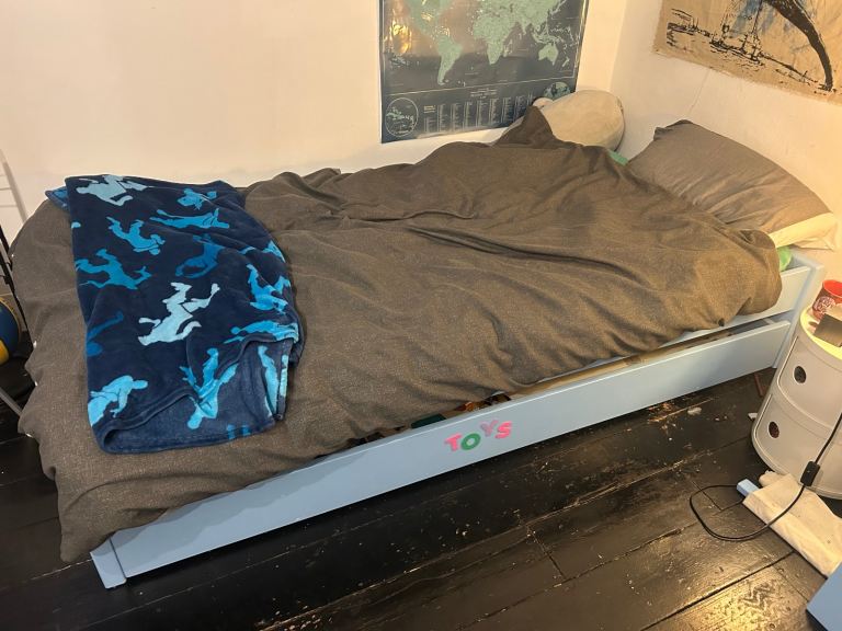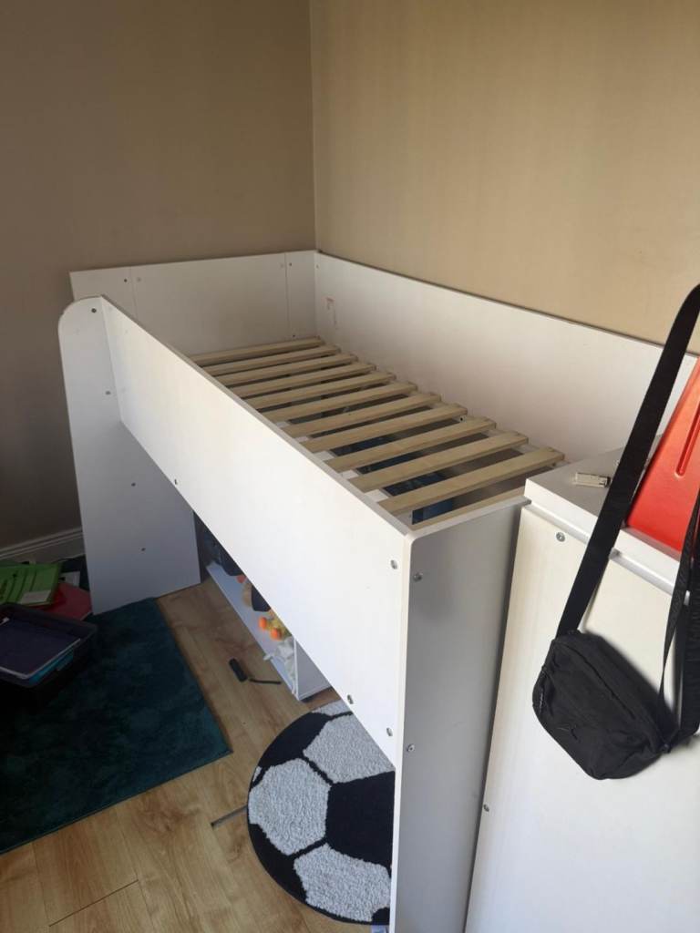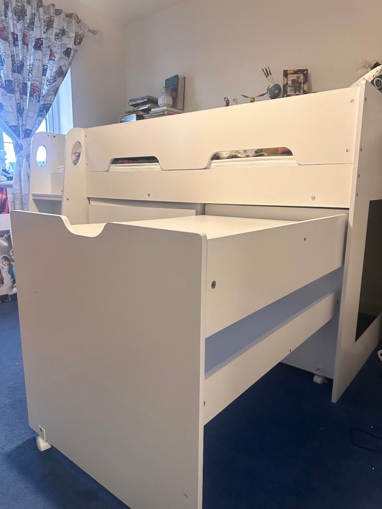 High sleeper bed. Single Silver metal bed framed bed which is in good order.