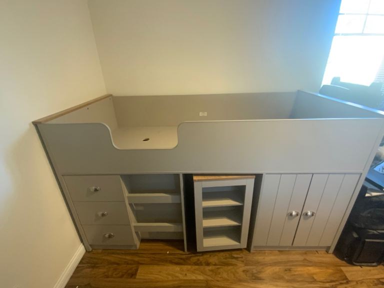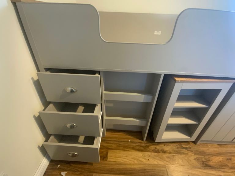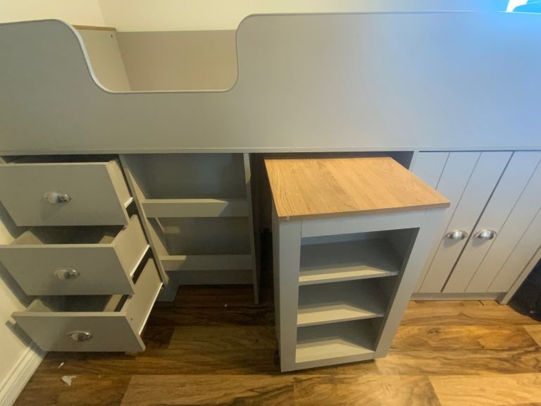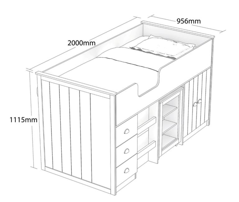Mid Sleeper provides a comfortable place to sleep with lots of storage solutions. Designed with a bed, pull out desk and drawers, this is a great way to fit everything into your bedroom without taking up loads of space.