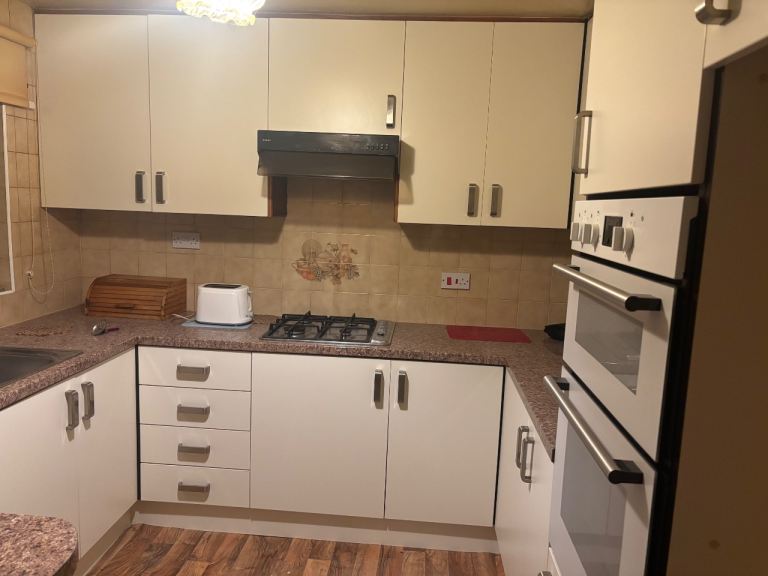 Complete kitchen with coocker , extractor fan, oven grill , sink , tap and everything else