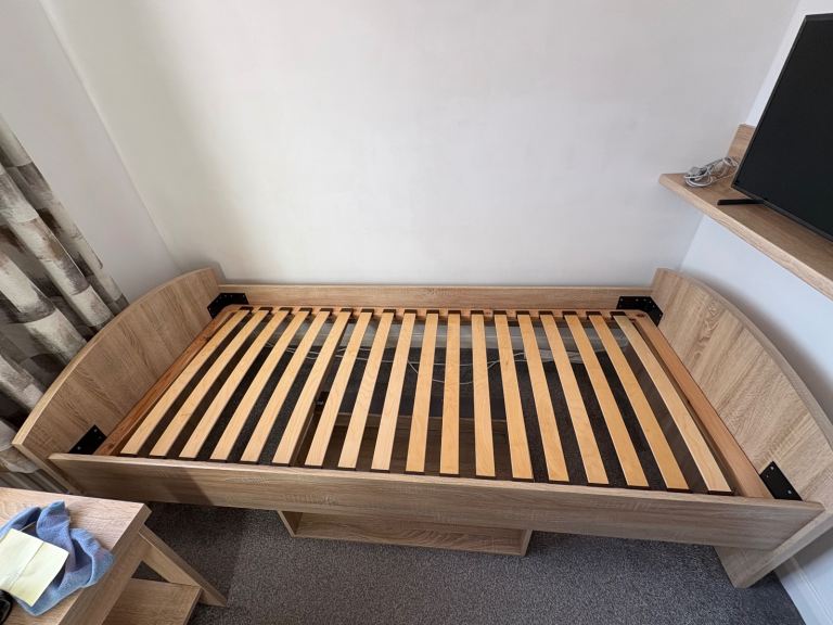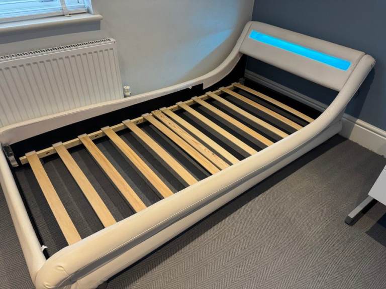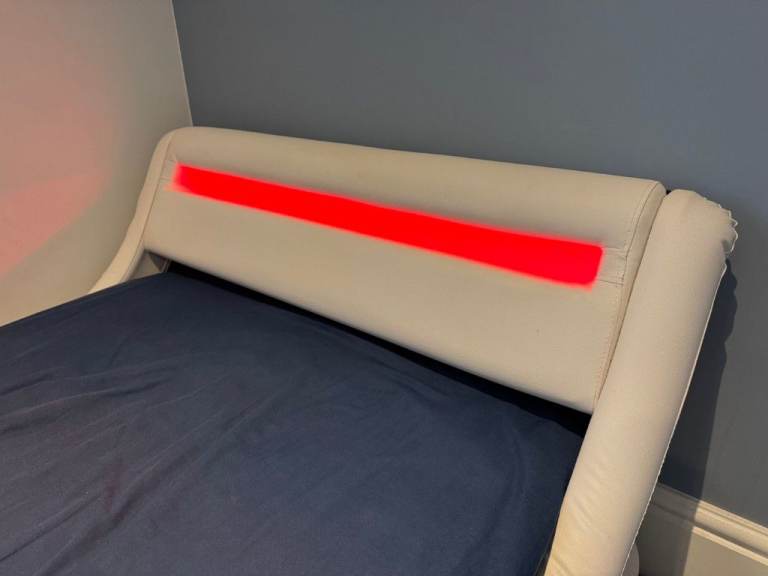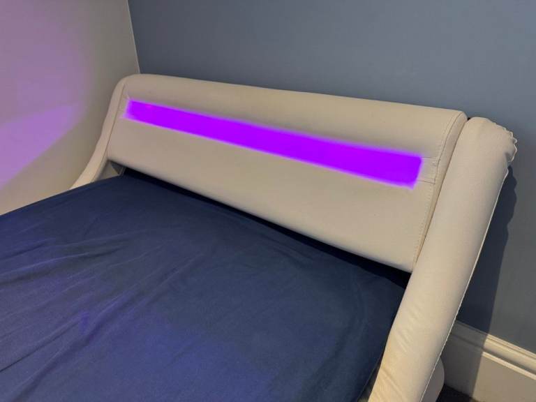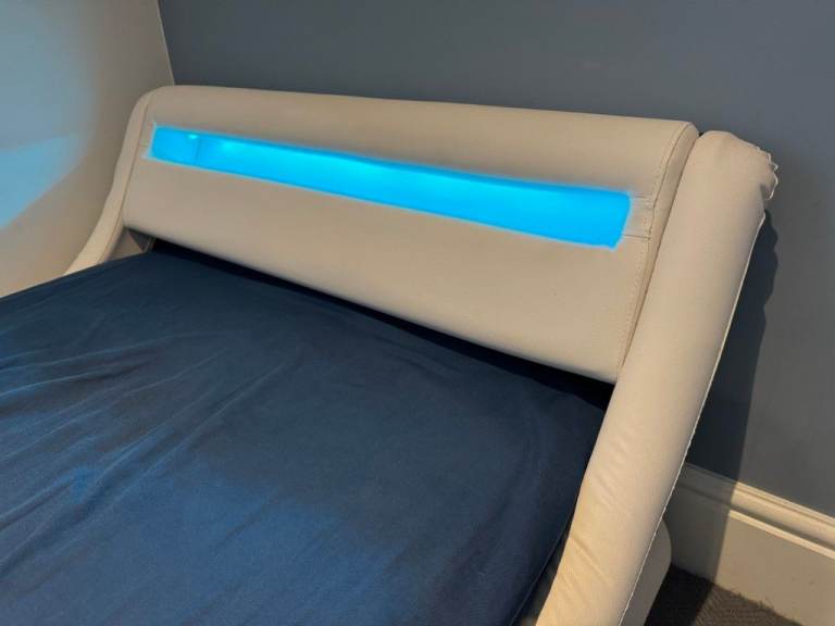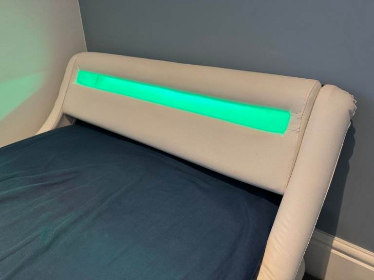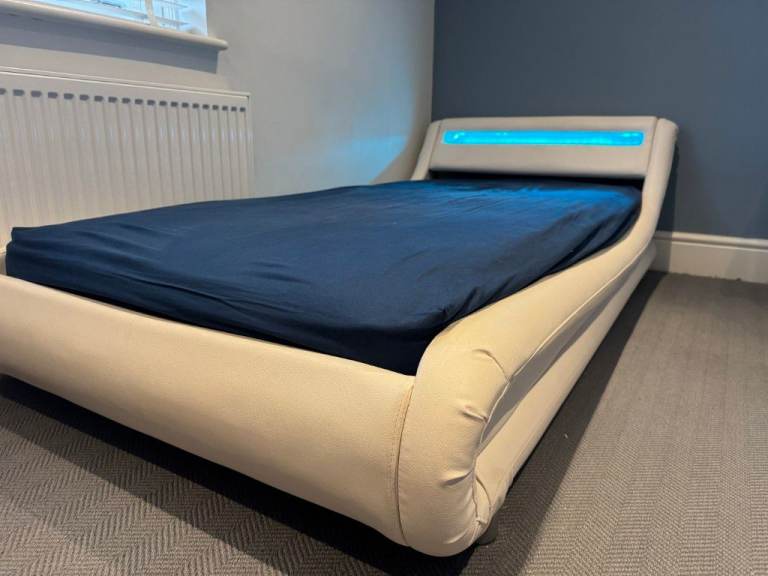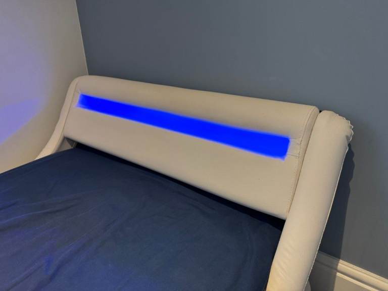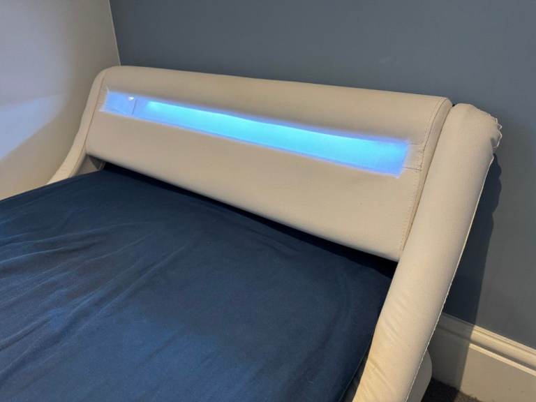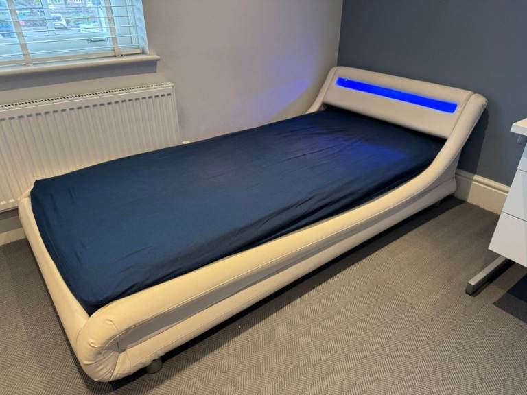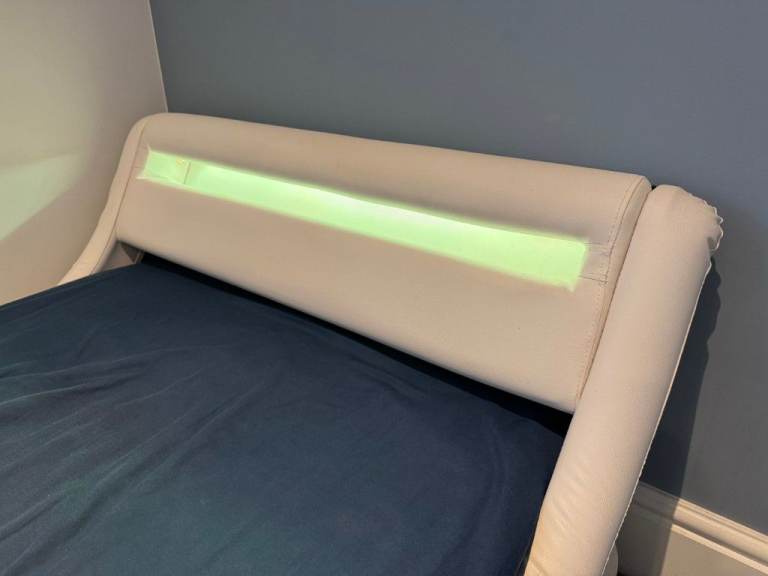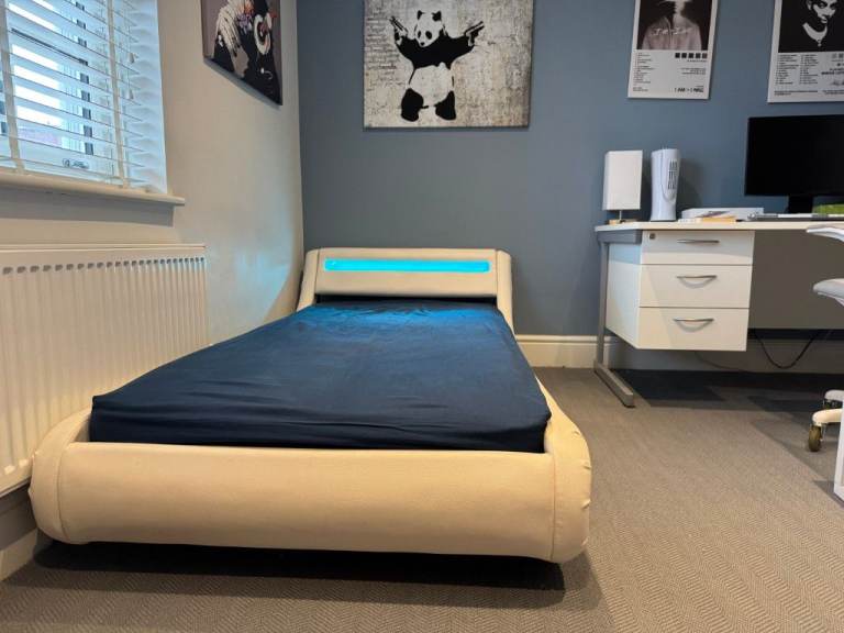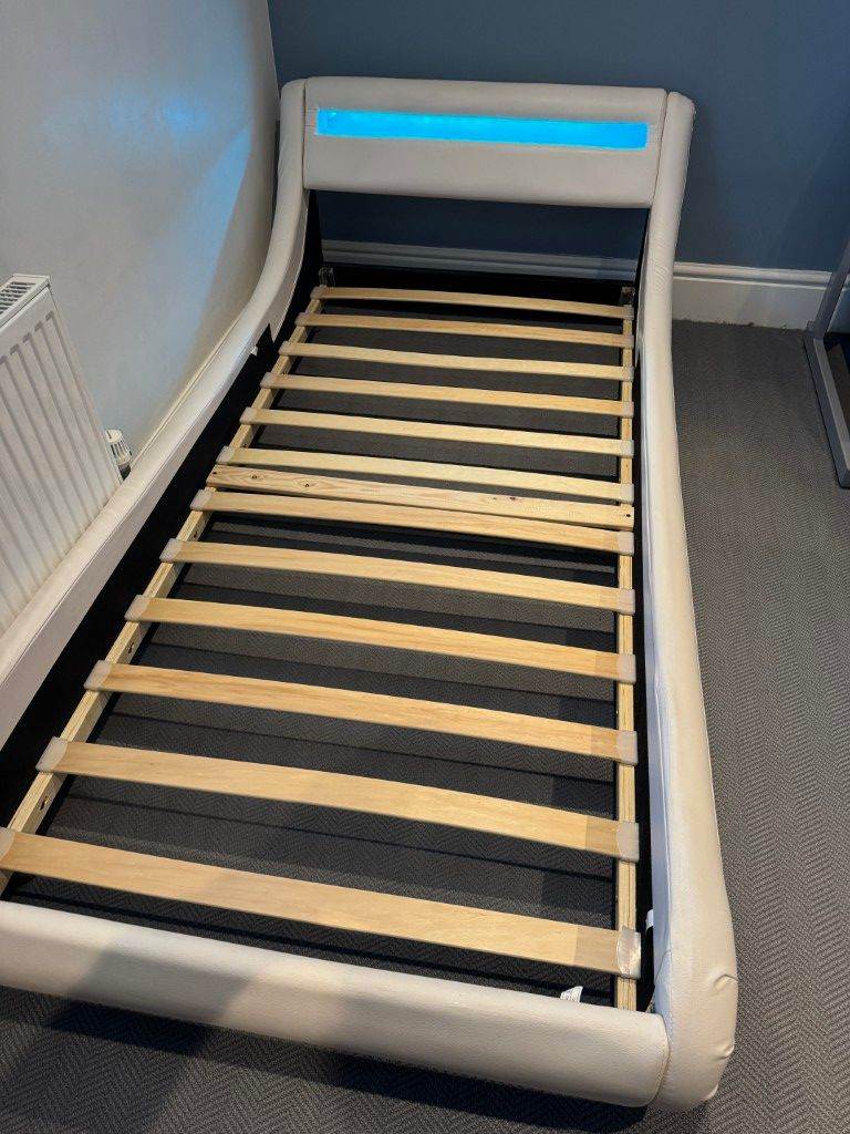 Posting for 4+ yearsDesigner Faux Leather Single Bed with LED Headboard, Thick Pocketsprung Mattress and Bedside Table