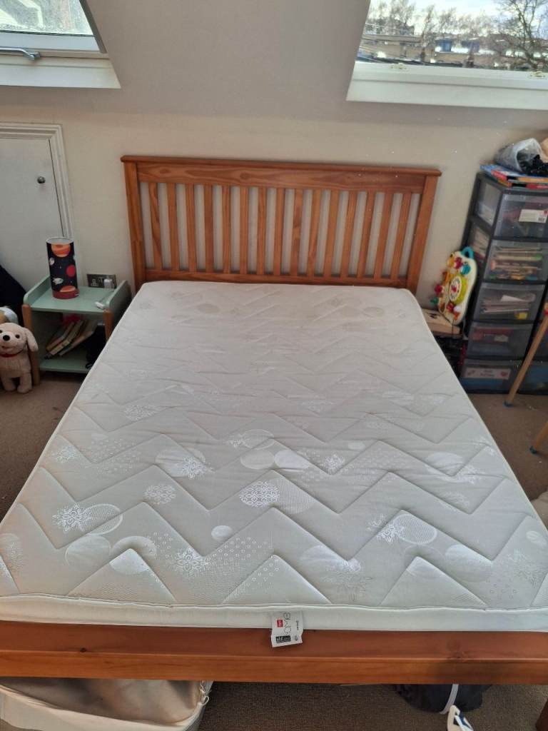Double bed frame and mattress, both from Argos. Barely used- has been in the guest room for rare guests! Dismantled and ready to go. Collection only, from an upstairs room.