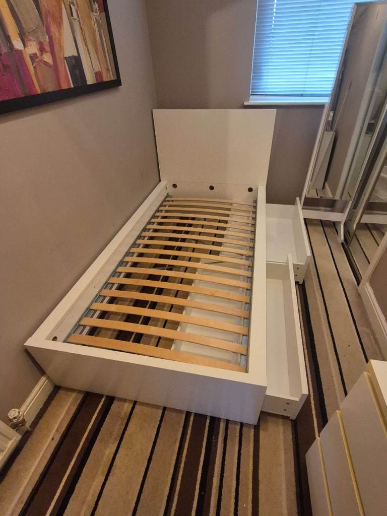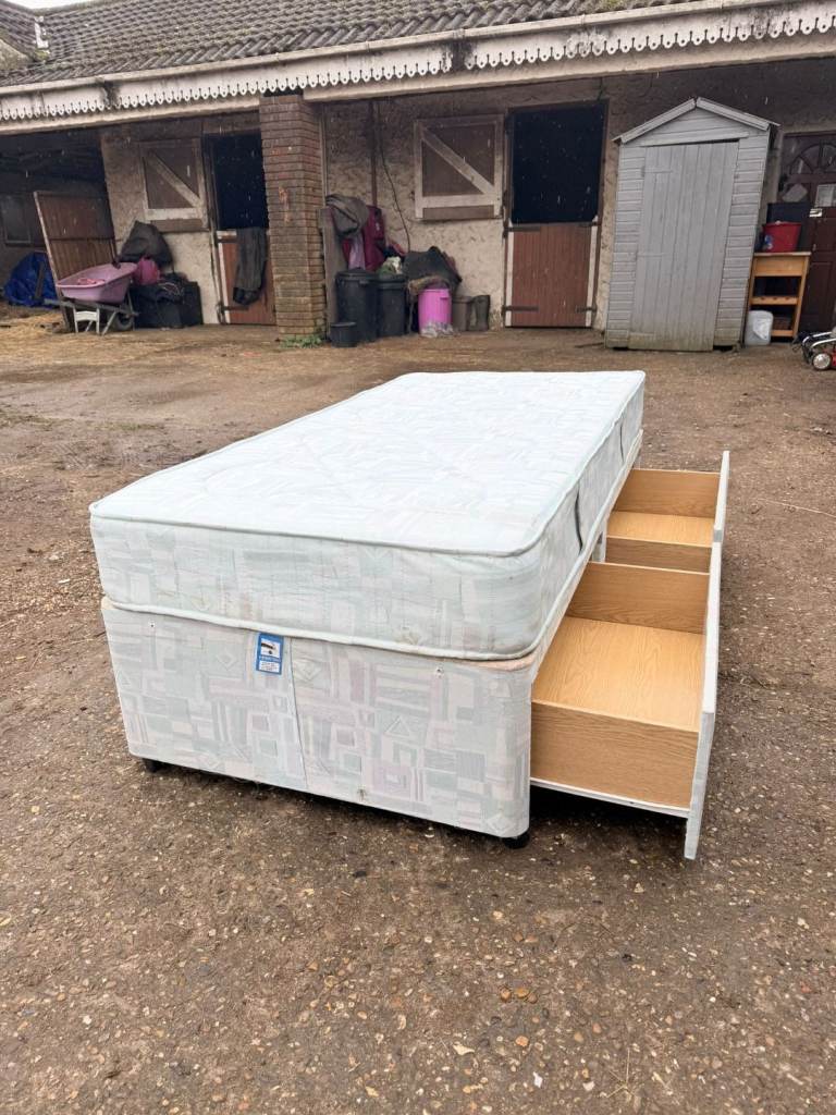 Dreams quality 3ft single lift up bed in grey woven fabric in perfect condition. Lots of storage. The base floor is boarded not flimsy fabric. Looks similar to the Francesca bed. Cost £399 new.