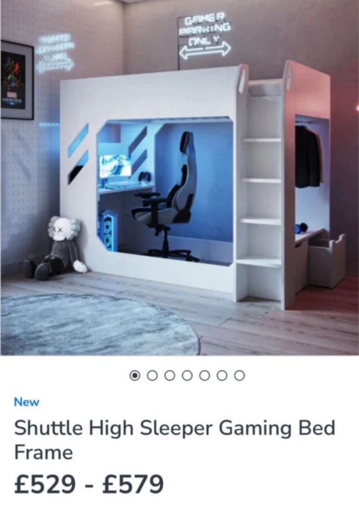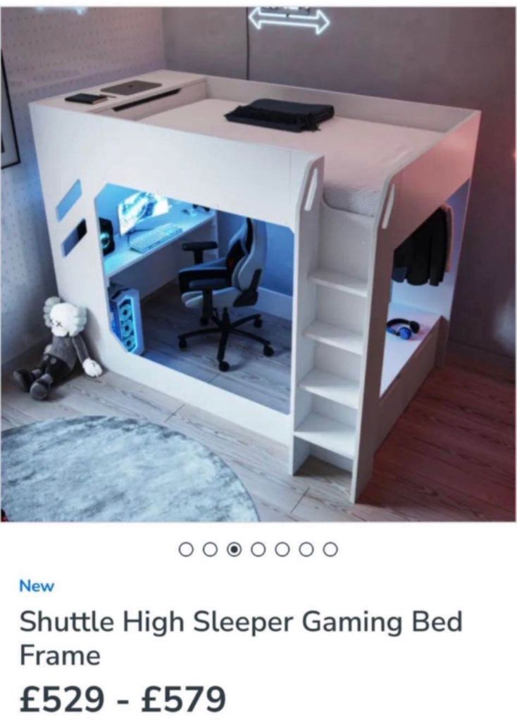 Posting for under a monthExcellent condition gaming bunk bed - used 3 times only !!