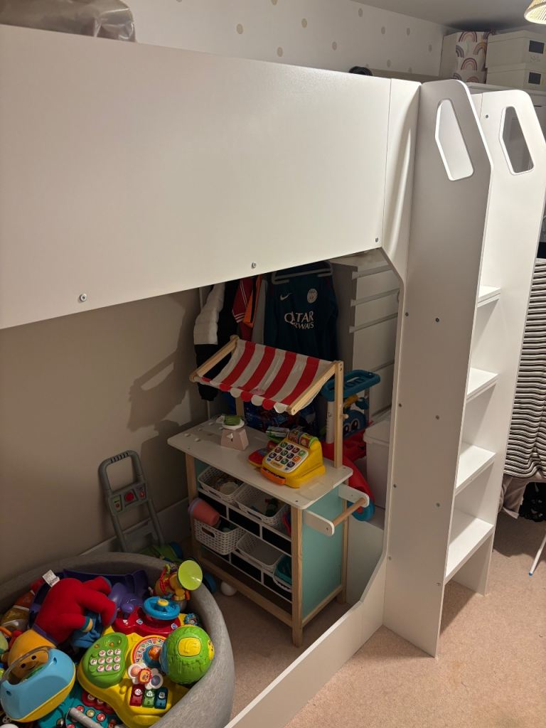 Bought for Christmas for my step son who has used it 3 times, selling now due to moving house & no need to take it with us. The bed itself is in excellent condition, practically brand new! We only use it now to store our babys toys in.