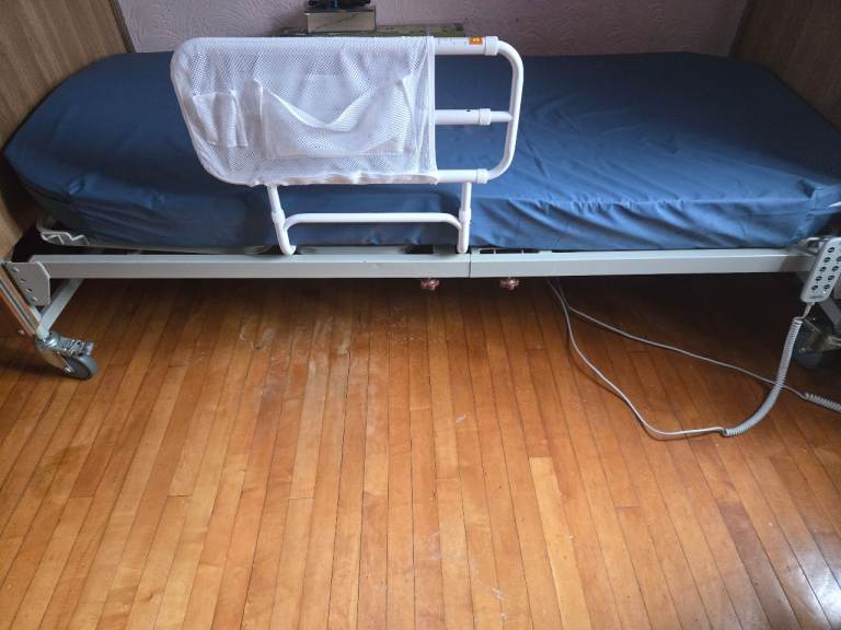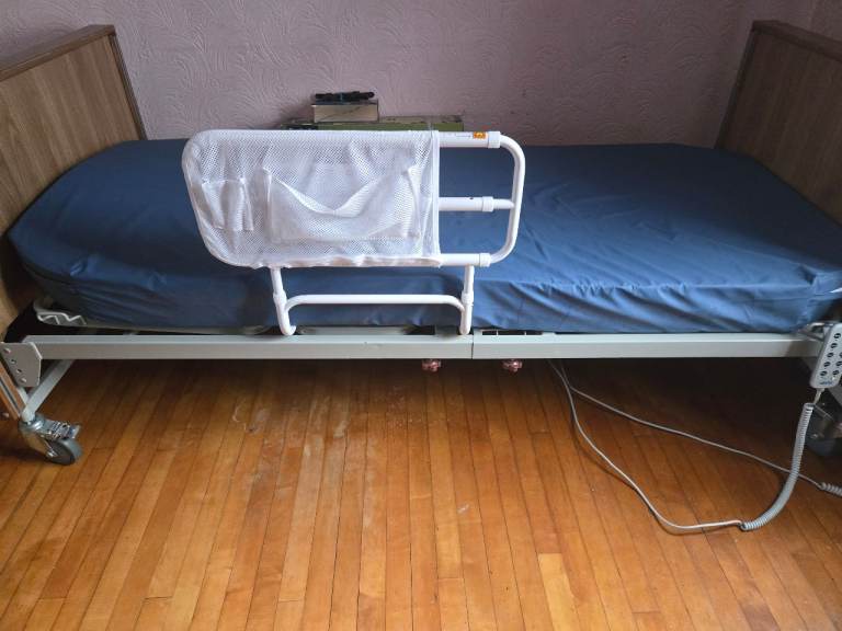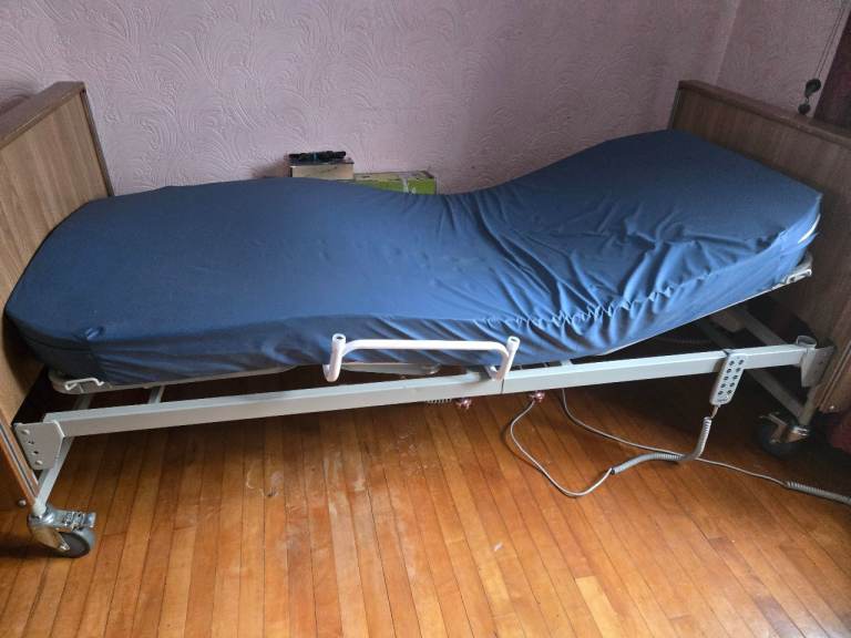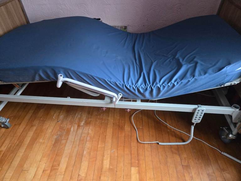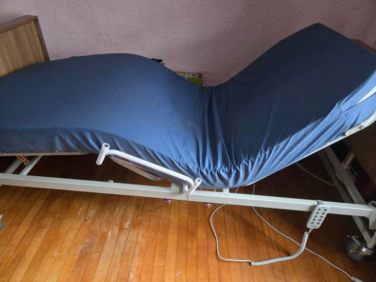 Only been used for a 2weeks so its in very good condition with 10 functions on remote to make life easy fully adjustable and able to lift up to easy clean underneath oak look surround ,side safety rail to keep person safe , fully waterproof matress grab a bargain as its just no longer needed easy to transport as dismantles into 4 sections so fits into jeep no problem call whatsapp or text viewings welcome