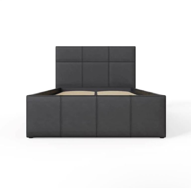 This GFW Single Black End Lift Ottoman Storage Bed offers an attractive combination of contemporary style and ample storage space. This beautifully crafted frame is finished in high quality faux leather and complemented by a simple yet stylish stitched headboard. It is an ideal solution if space is at a premium in your bedroom as the ottoman base provides generous storage space for linen, blankets, towels or clothes. The base lifts easily with the help of a gas hydraulic system so you can access the lined storage area underneath the bed. Size: 90cm.