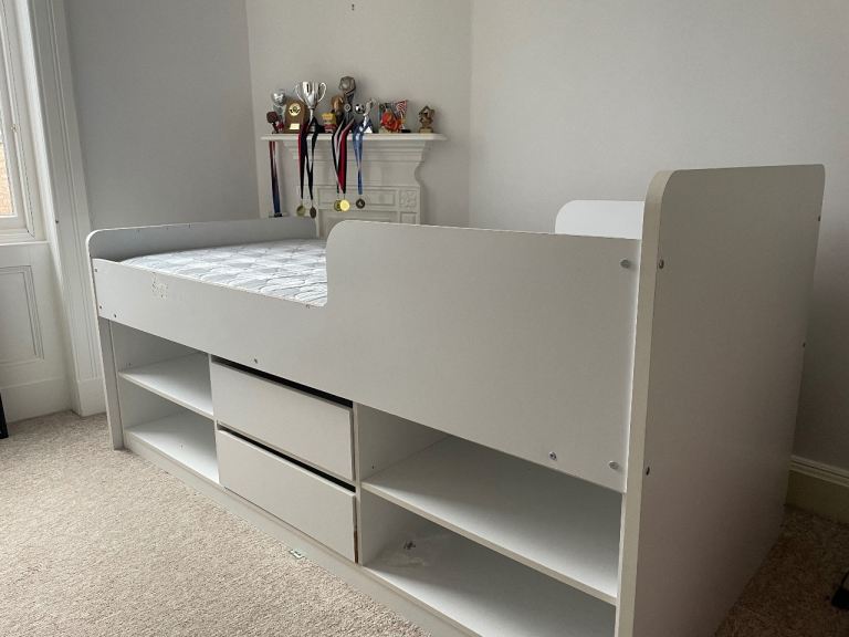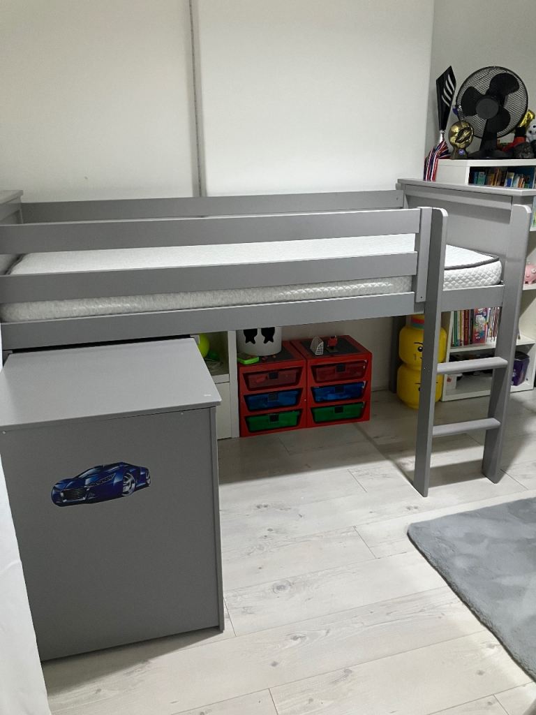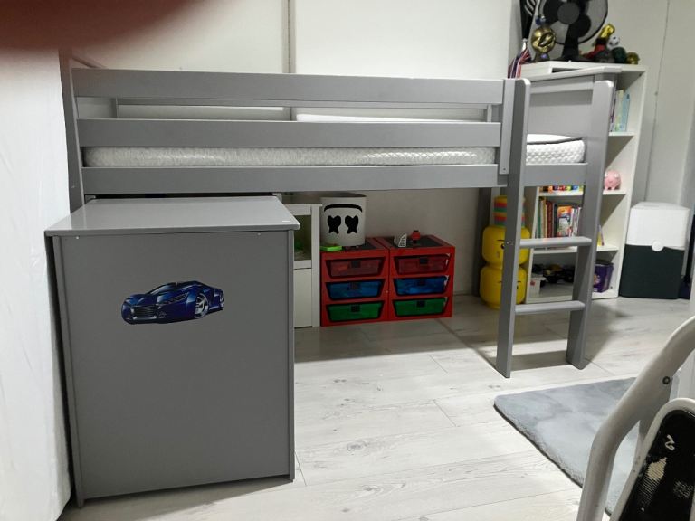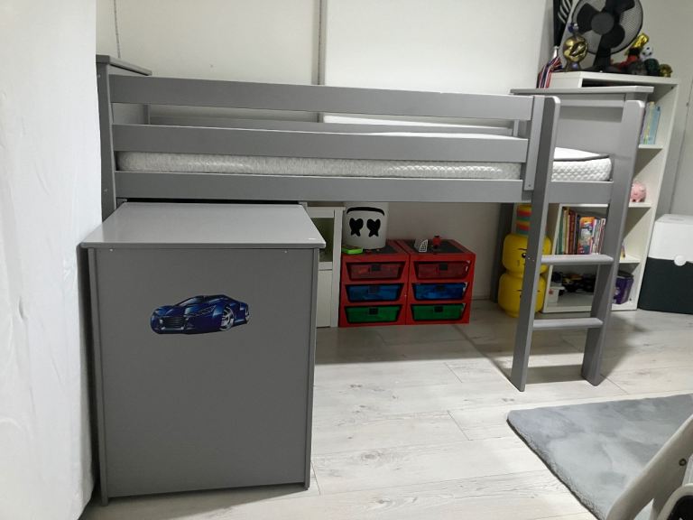 Posting for 12+ yearsHabitat Brooklyn Mid Sleeper Bed with Pull-Out Desk & Mattress – Grey