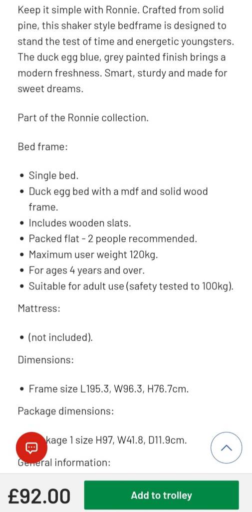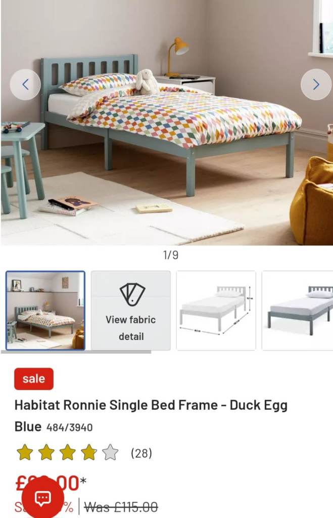 Posting for under a monthHabitat Ronnie Single Bed Frame + Mattress – Duck Egg Blue