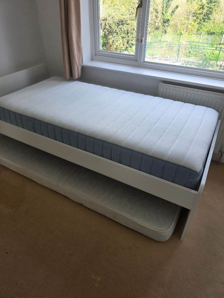 Both bed frame and mattress are in good condition and have plenty of life left in them.