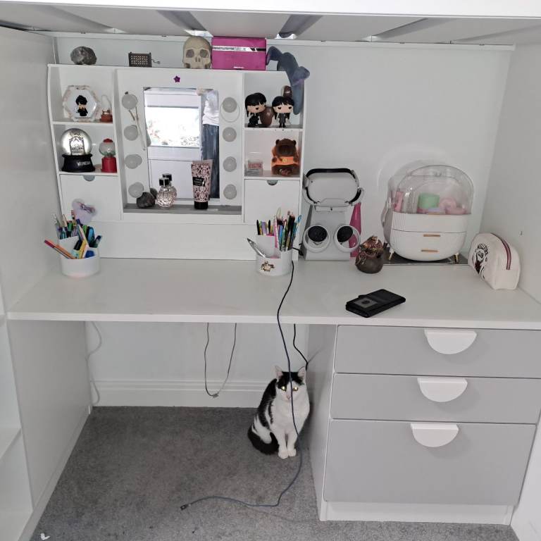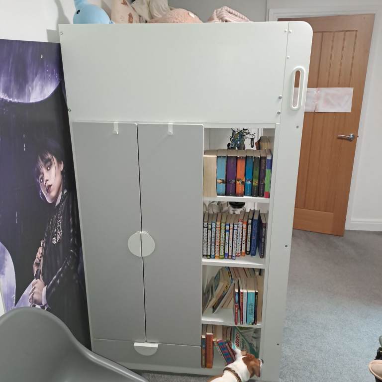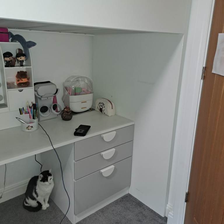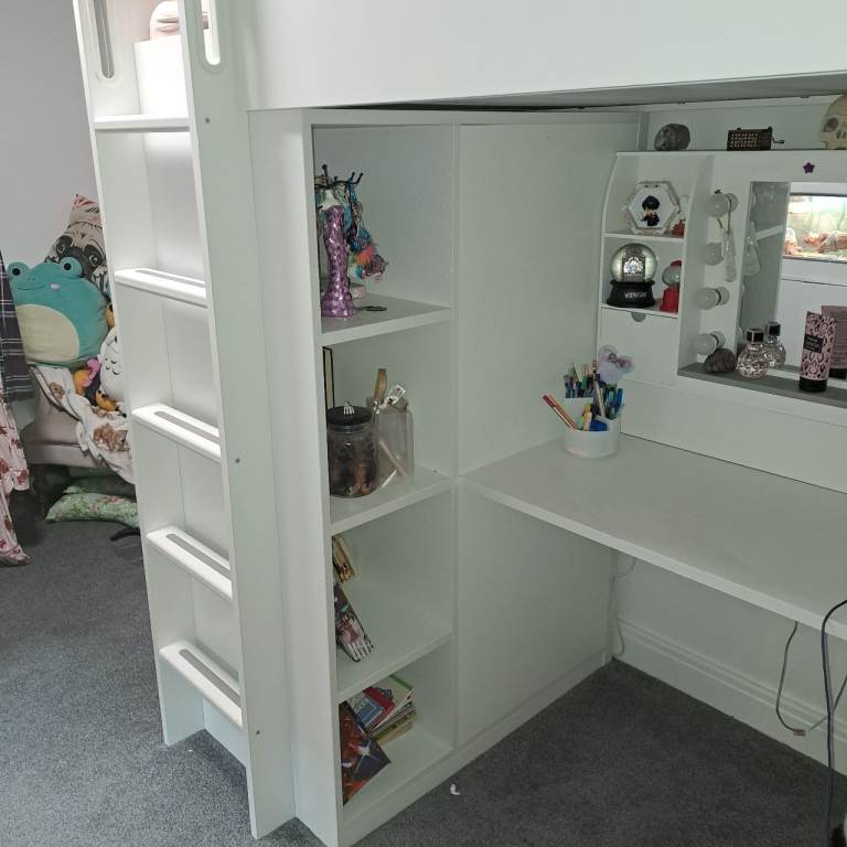 Loft bed in great condition the mirror in the photo is not included only had it for a year white white gray door and draws collection only