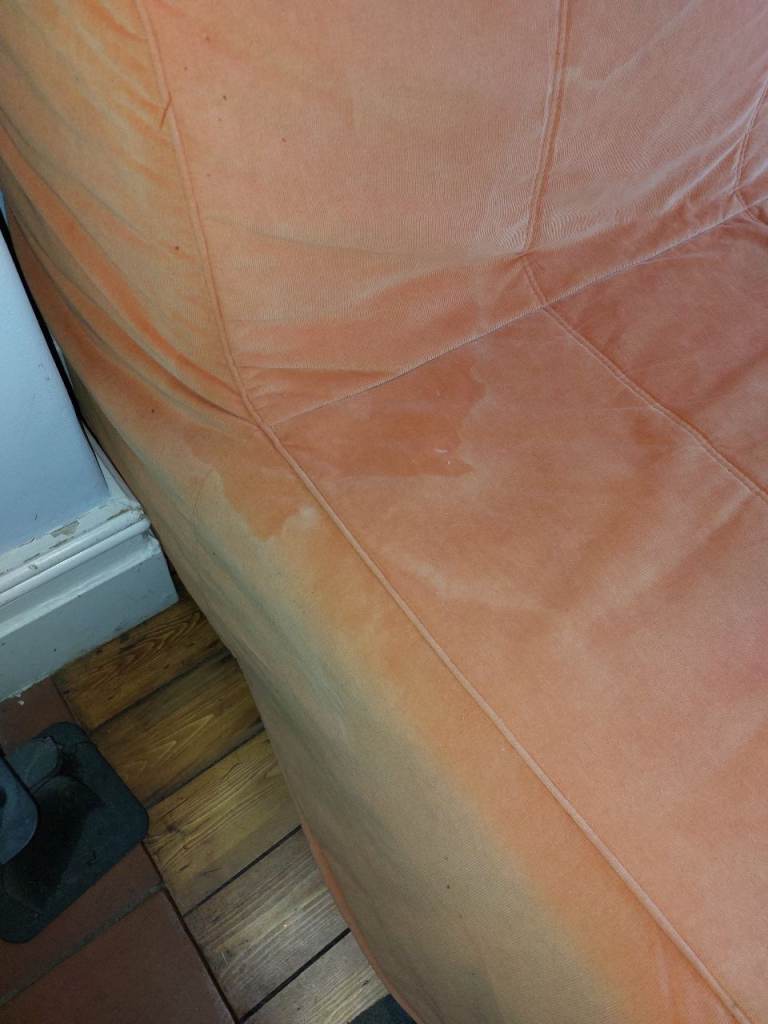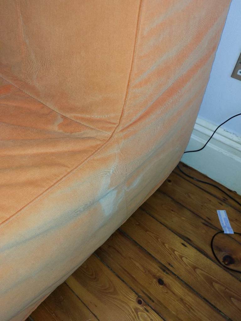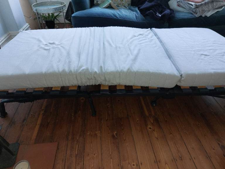 Very popular and versatile extra bed which folds up into a chair - perfect for box room or the lounge. This one is second hand and the main bed and mattress in very good condition. The cover does have quite a few stains which we have tried to wash out unsuccessfully! This is the only reason I have marked as fair condition. We tend to cover with a throw anyway (as per the last picture) but you can buy covers for around £60.