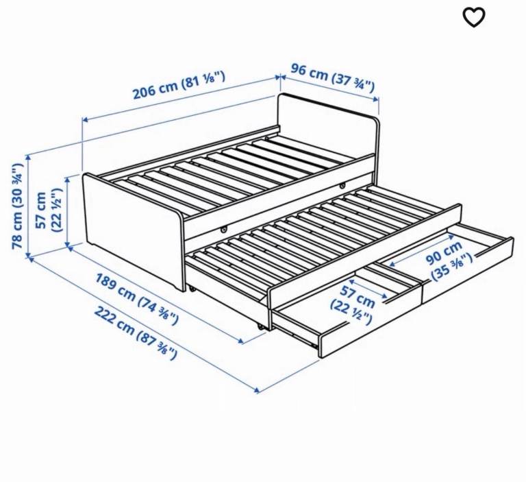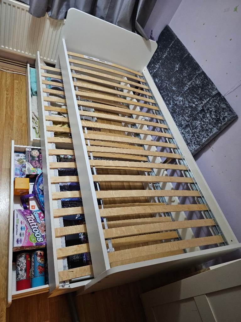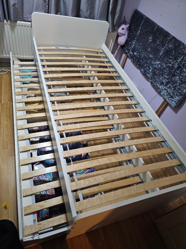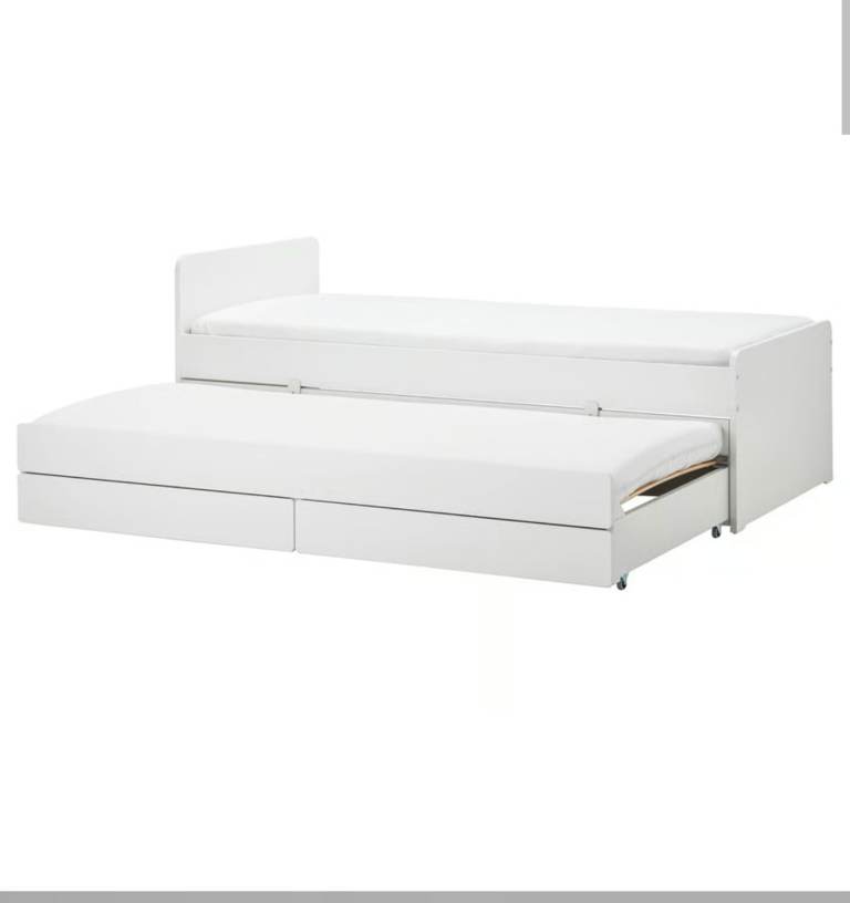 IKEA Slakt bed with two storage drawers and pull-out underbed, see photos. All intact and in great condition. This is from a pet ans smoke free home.