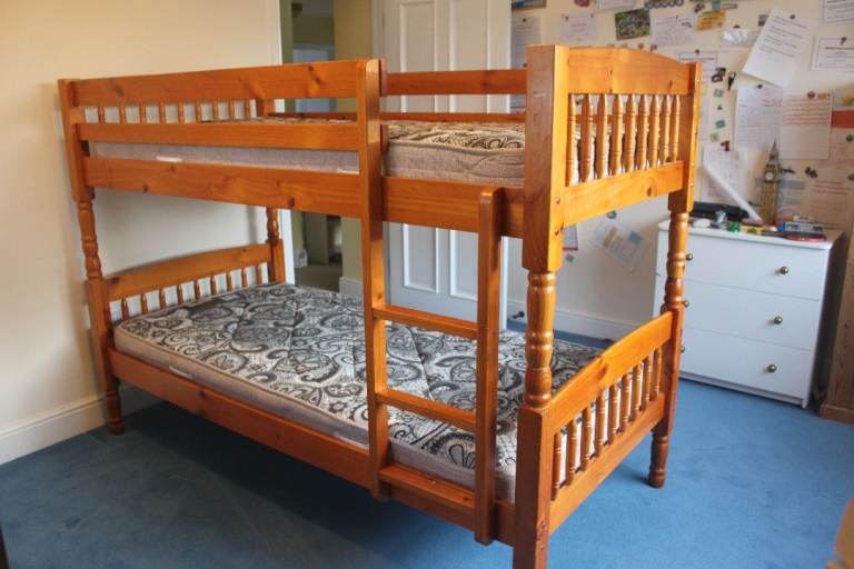 Metal framed bunk bed, collection only