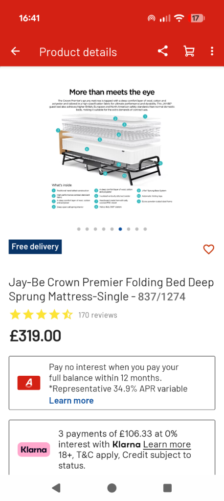Jay-Be Crown Premier Folding Bed Deep Sprung Mattress-Single -