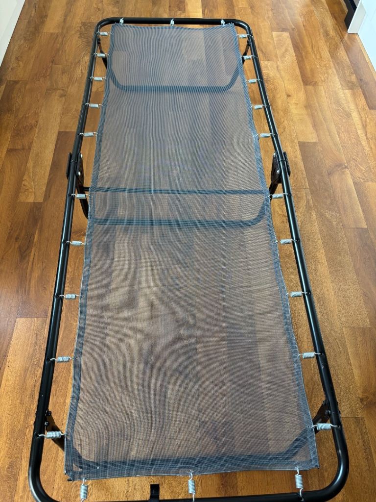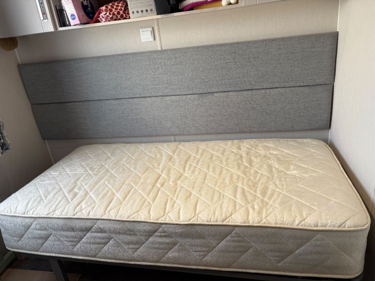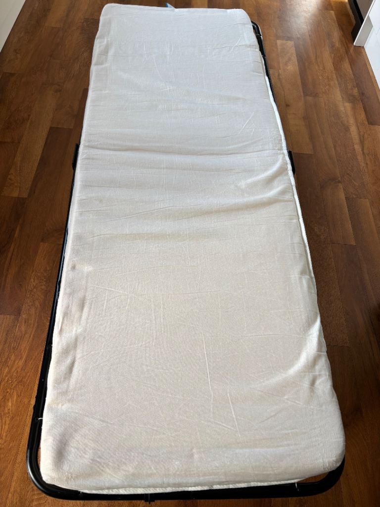 Excellent condition, sprung base and foam mattress.