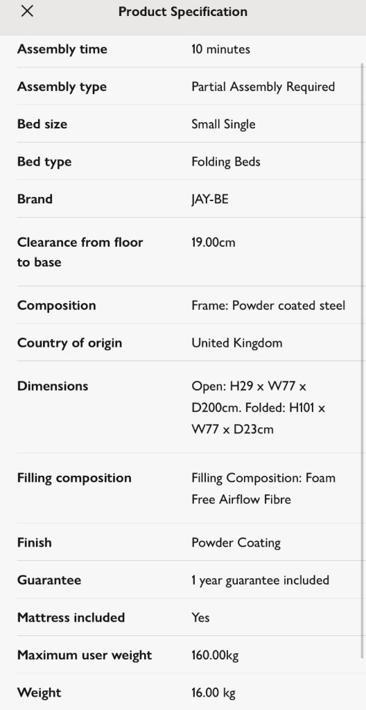 Purchased new from John Lewis for £150 - solid guest bed that folds up with thicker mattress