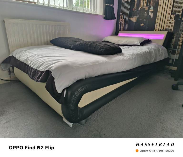 Leather bed good condition with Led remote lighting. Only selling due to getting a Double bed.