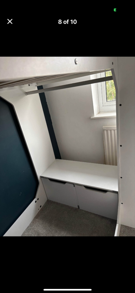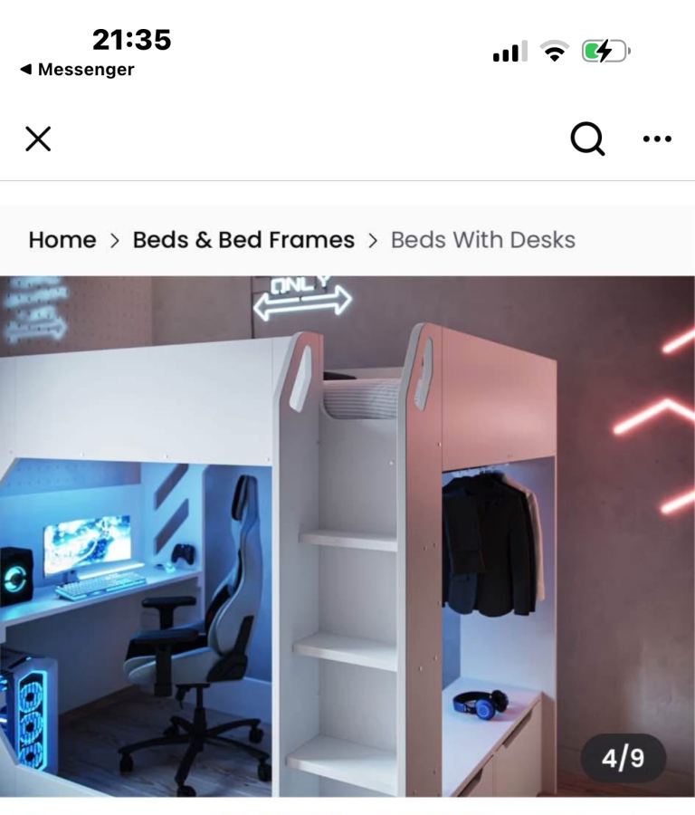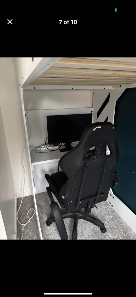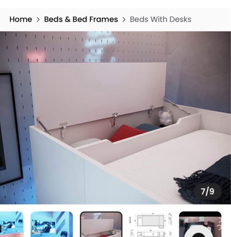 Hi there I’m selling this desk bed in really good condition. I bought this for my son he didn’t even sleep for one night I don’t have enough space in my room I can’t keep it for any longer so please if any one is interested please contact me. Thank you.