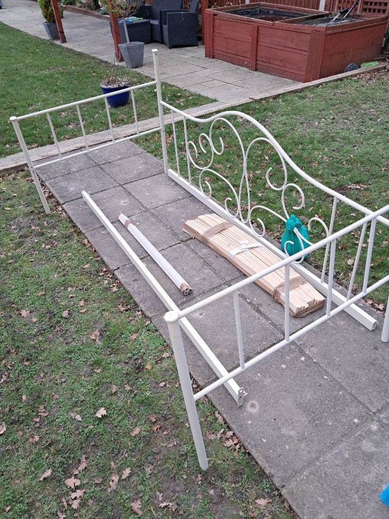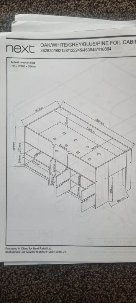 The bed has the original assembly instructions and the photo detail the full product dimensions although it measures approximately 1957mm wide x 960mm deep x 950mm tall.