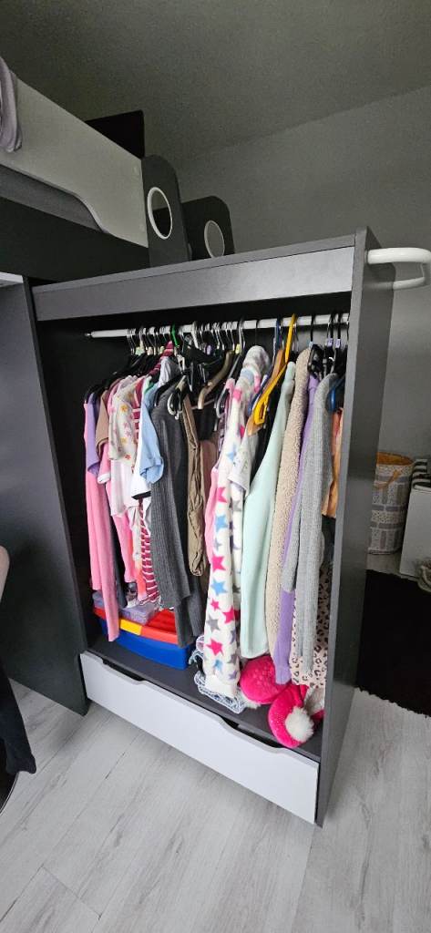 Pegasus grey and white wooden high sleeper children's (young and teen) single bed - just 3 years old, brought in December 2022, used from March 2023. Only selling as 14 year old daughter has quickly outgrown as wants a standard bed, otherwise would have kept as it's a great bed and cost a lot more than selling for. REDUCED PRICE FROM £250, NOW £200.