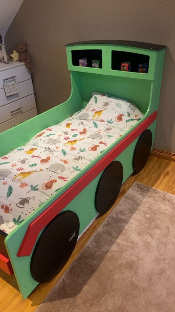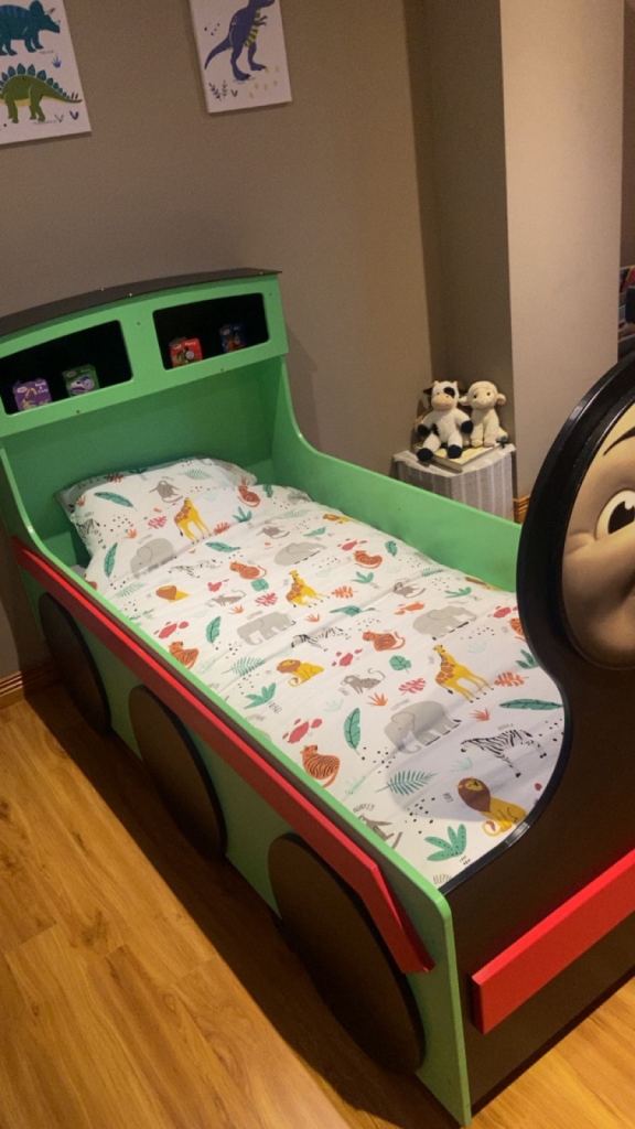 Posting for 7+ yearsPercy the Tank Engine Bed with Practically New Mattress – £100
