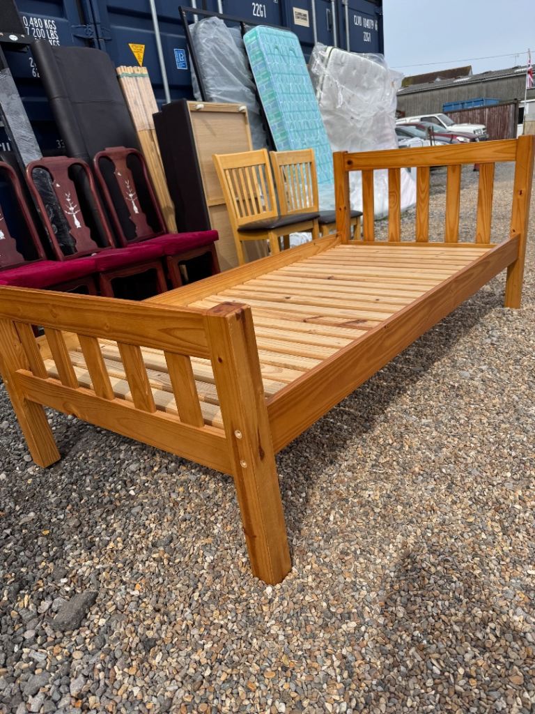 Pine single bed with mattress