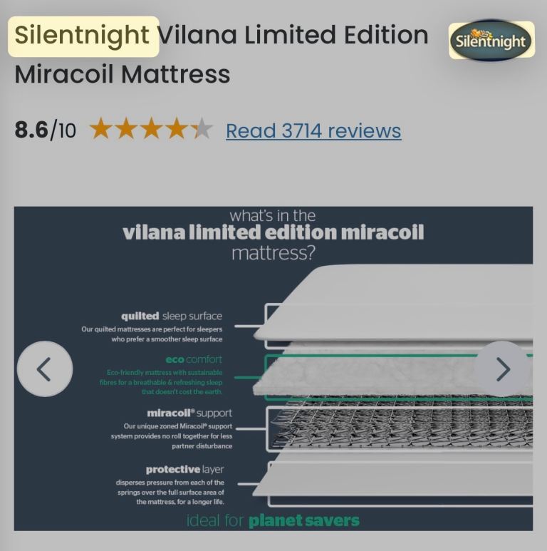 Posting for 3+ yearsSilentnight VILANA miracoil l hypoallergenic mattress