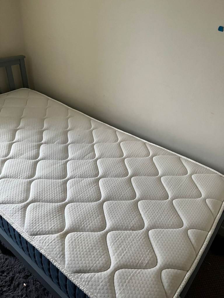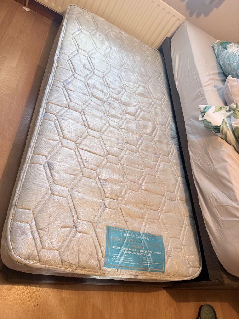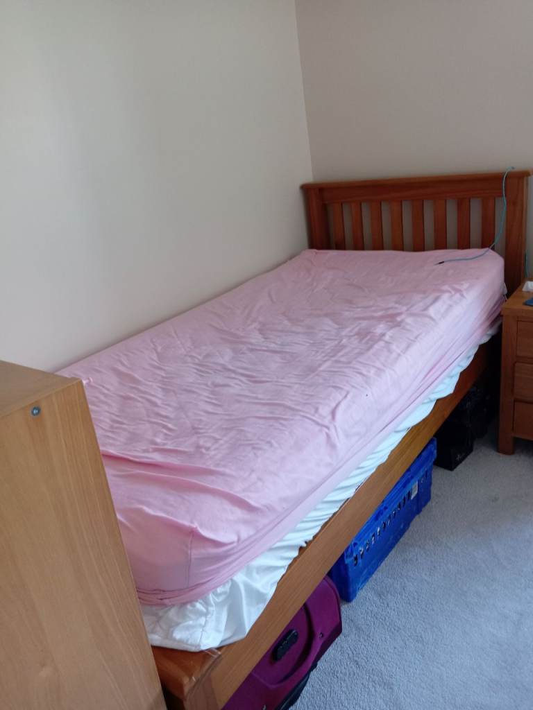 The bed has some signs of use, please look at photos. The headboard is in excellent condition