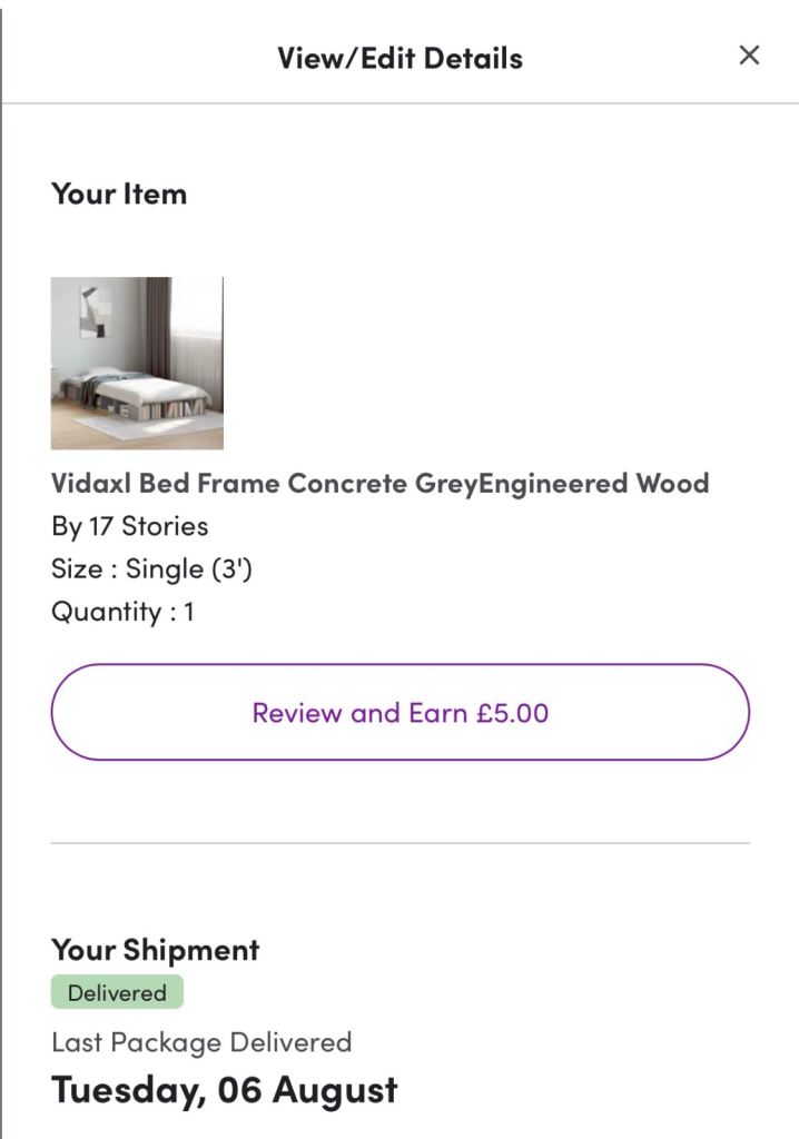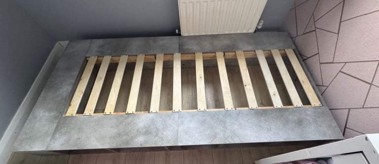 Small split in one of the slat lips. Can be glued or replaced but so far hasn’t made any difference to the use of the bed. Have included a photo (last photo)..
