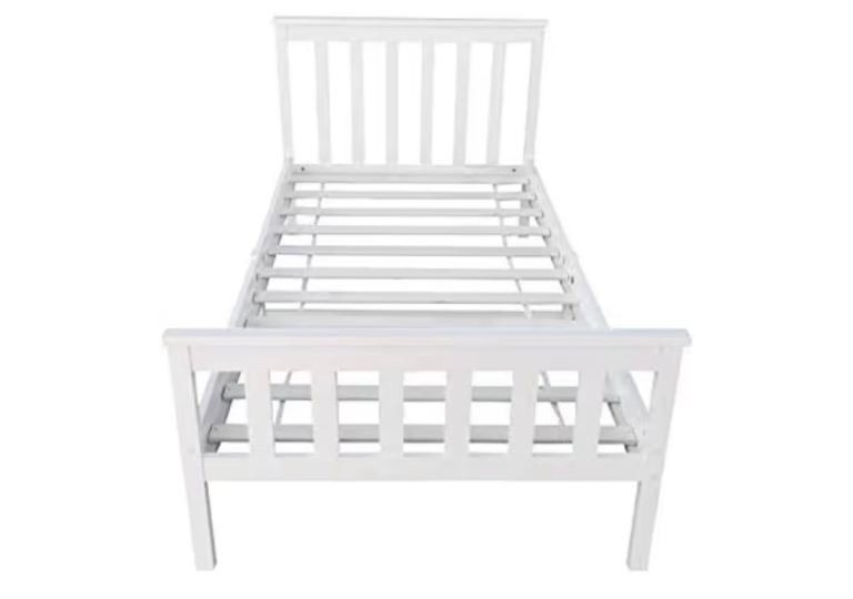 3ft Single Wood Bed Frame with Mattress Sprung Gel Memory Foam White Pine Solid wood Bed Frame Shaker Style UK (3ft Bed with Mattress).