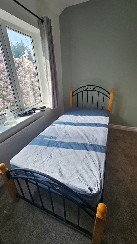 Great condition. The bed frame is sturdy as anything as made from metal. Few marks on the legs (example in picture). Mattress in great condition too.