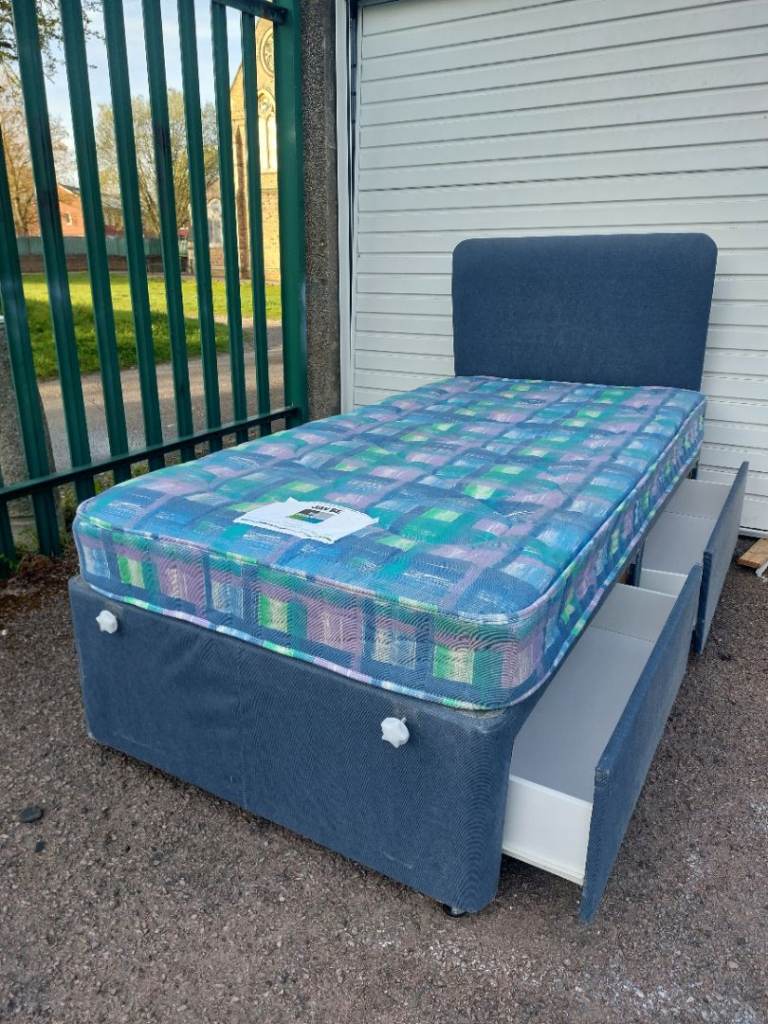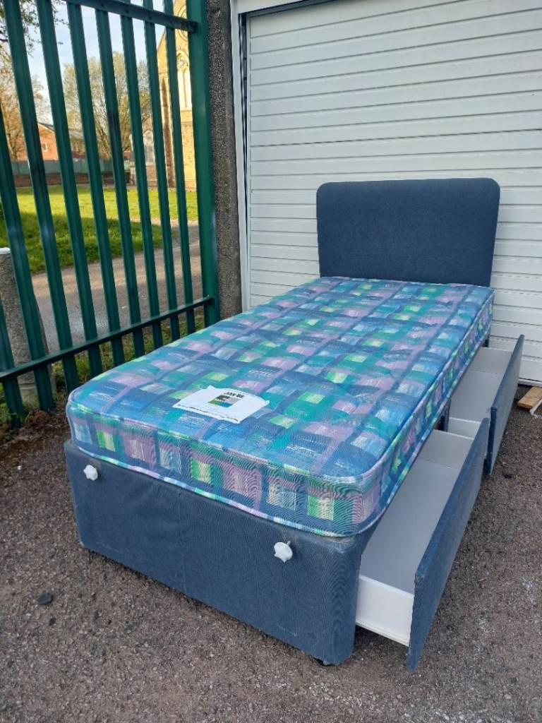 Single bed with very clean mattress and built-in drawers for only £60. Delivery available. Text or call