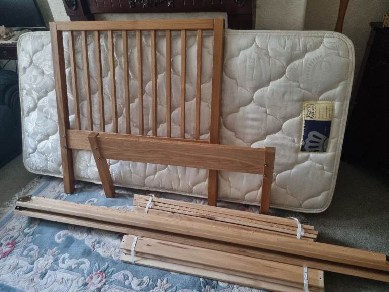 Single Bed and good quality clean Mattress, barely used as in spare bedroom. Dismantled ready for collection.