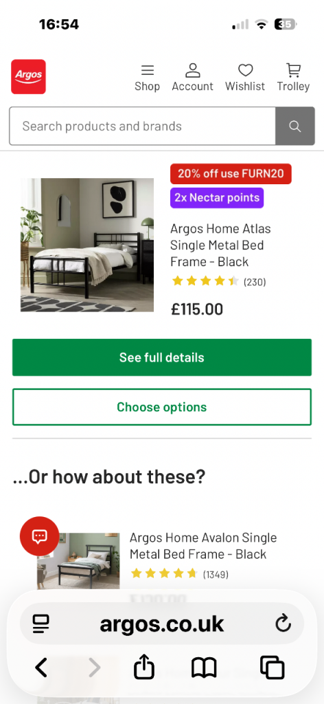 Single bedframe new in box paid £115 but found out it was to long for the room and lost receipt so can’t return grab a bargain